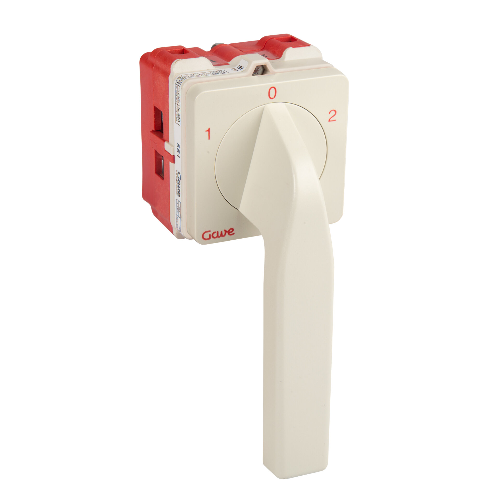 Changeover cam switch, IP20 with 1-0-2 grey front plate 64x64 for panel fixing. 1 pole 100A. Size D2. Ergonomic screwless quick-mount handle. Connection with cage terminals for 16-50 mm² cable. Compatible with multiple accessories from the A5 series.