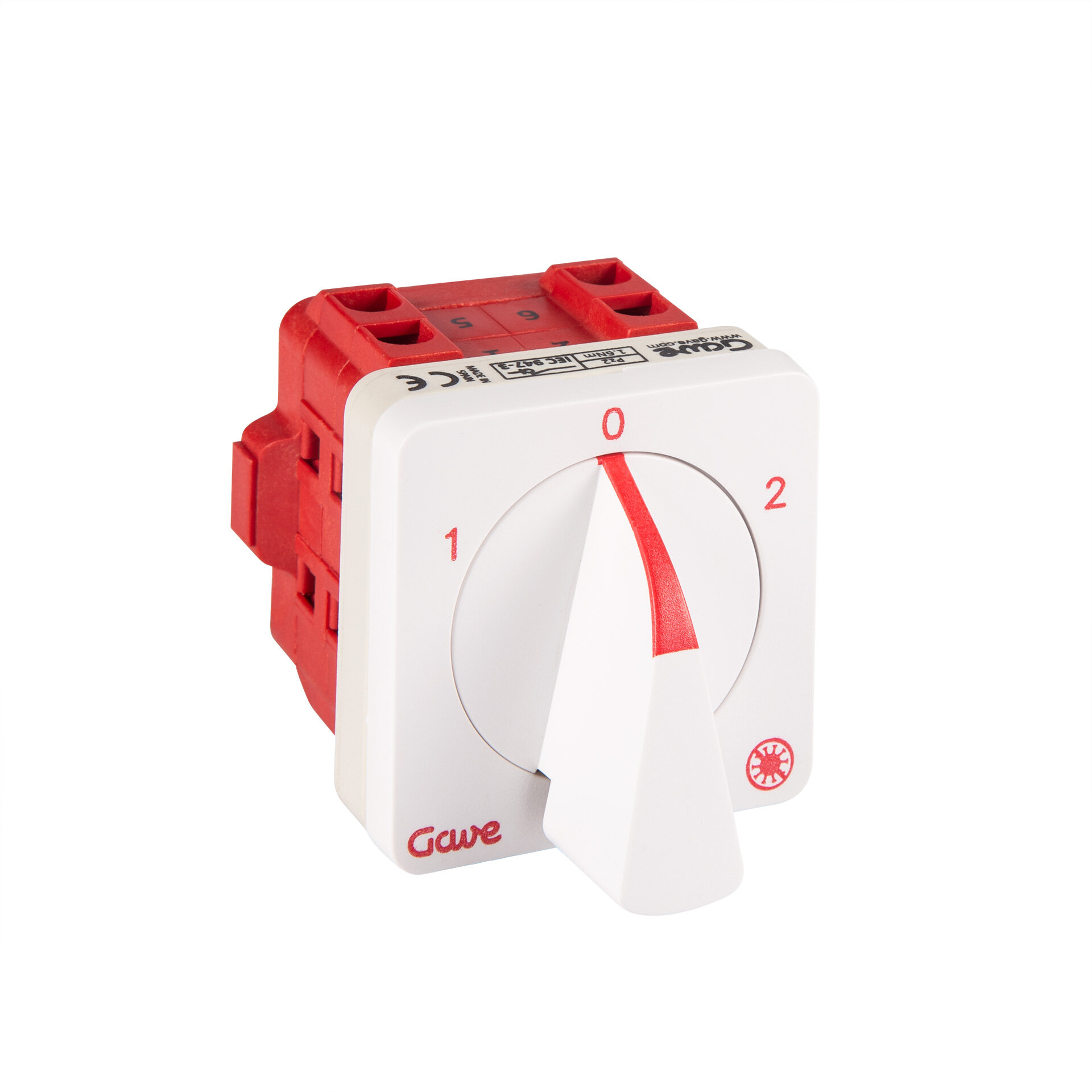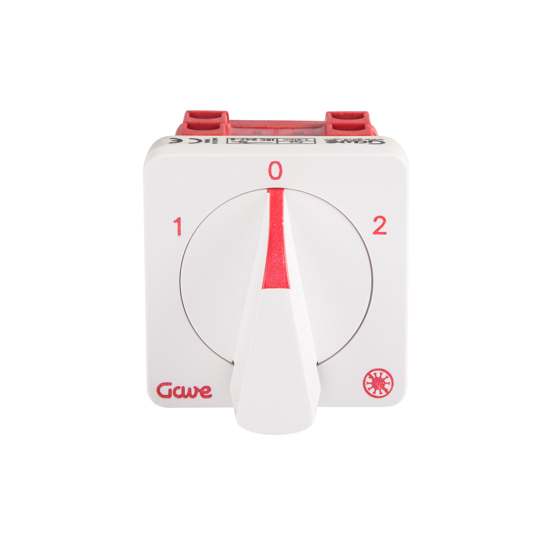 Changeover switch IP20. Kit of 1-0-2 front plate with antimicrobial treatment White color RAL 9010 48x48 for panel fixing. 2 poloss 16A. Size D0. Ergonomic screwless quick-mount handle. Connection with cage terminals for 2.5-6 mm² cable. Compatible with multiple accessories from the A5 series.