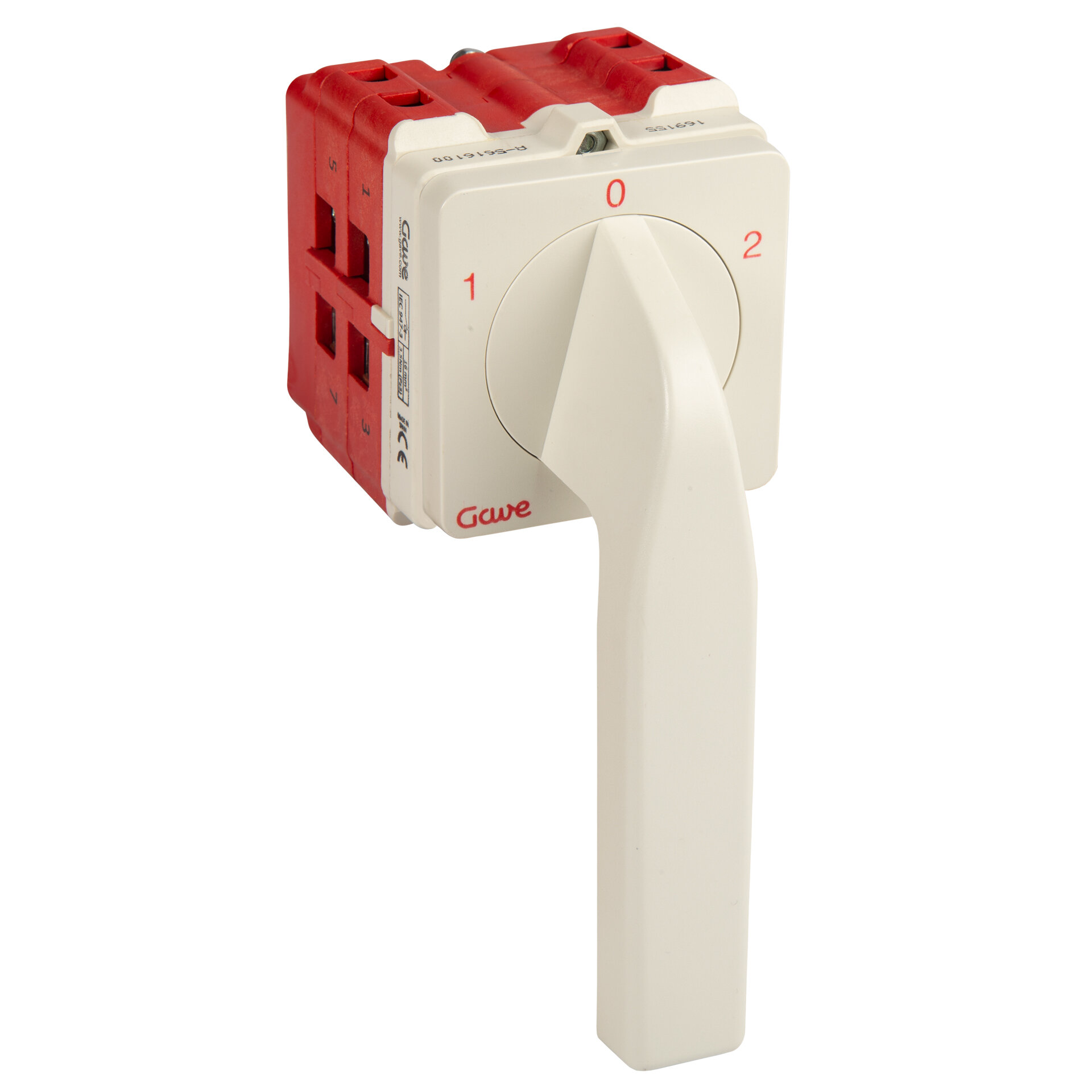Changeover cam switch, IP20 with 1-0-2 grey front plate 64x64 for panel fixing. 2 poles 125A. Size D2. Ergonomic screwless quick-mount handle. Connection with cage terminals for 16-50 mm² cable. Compatible with multiple accessories from the A5 series.
