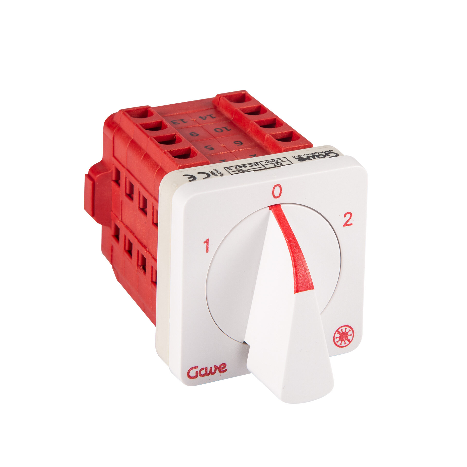 Changeover switch IP20. Kit of 1-0-2 front plate with antimicrobial treatment White color RAL 9010 48x48 for panel fixing. 4 poloss 16A. Size D0. Ergonomic screwless quick-mount handle. Connection with cage terminals for 2.5-6 mm² cable. Compatible with multiple accessories from the A5 series.