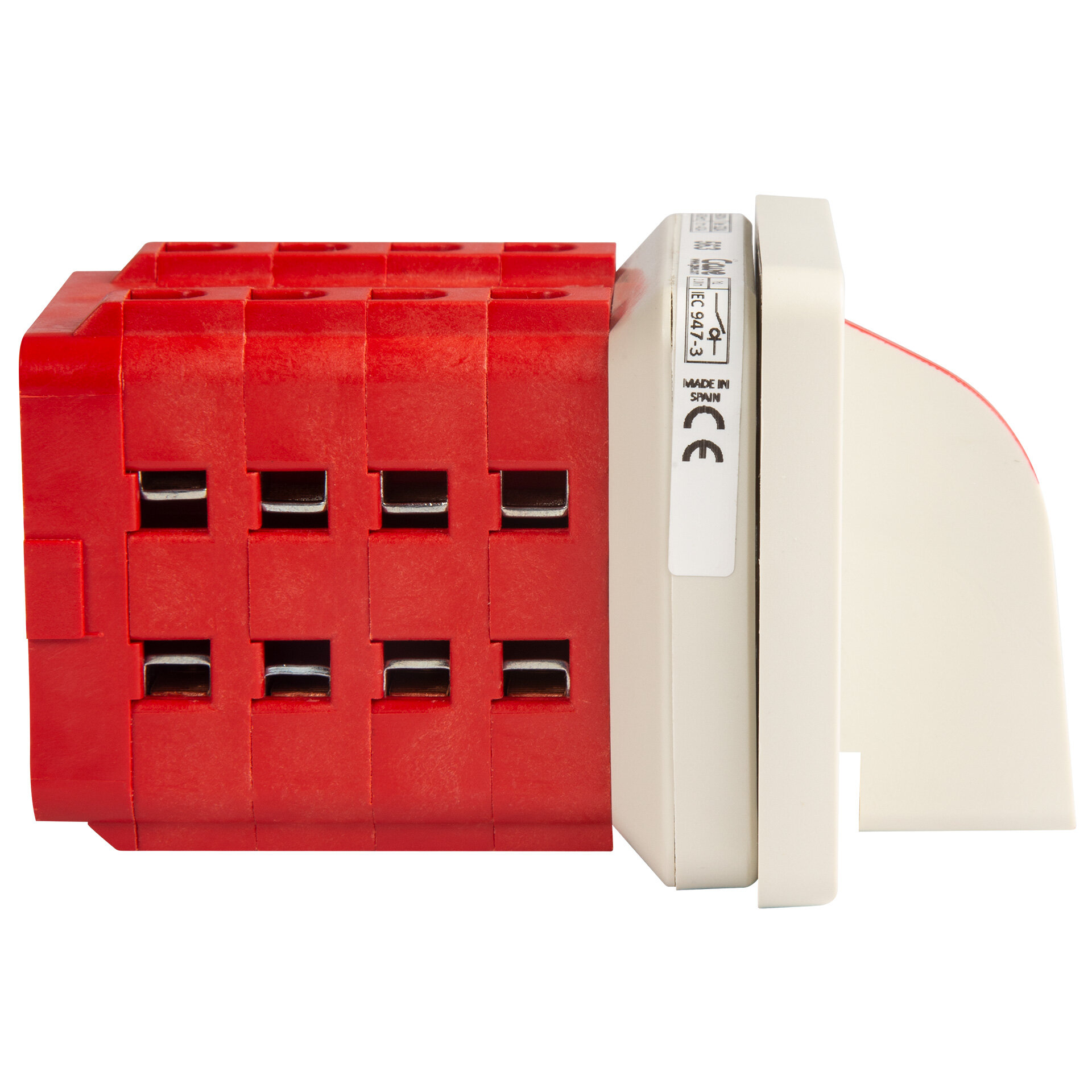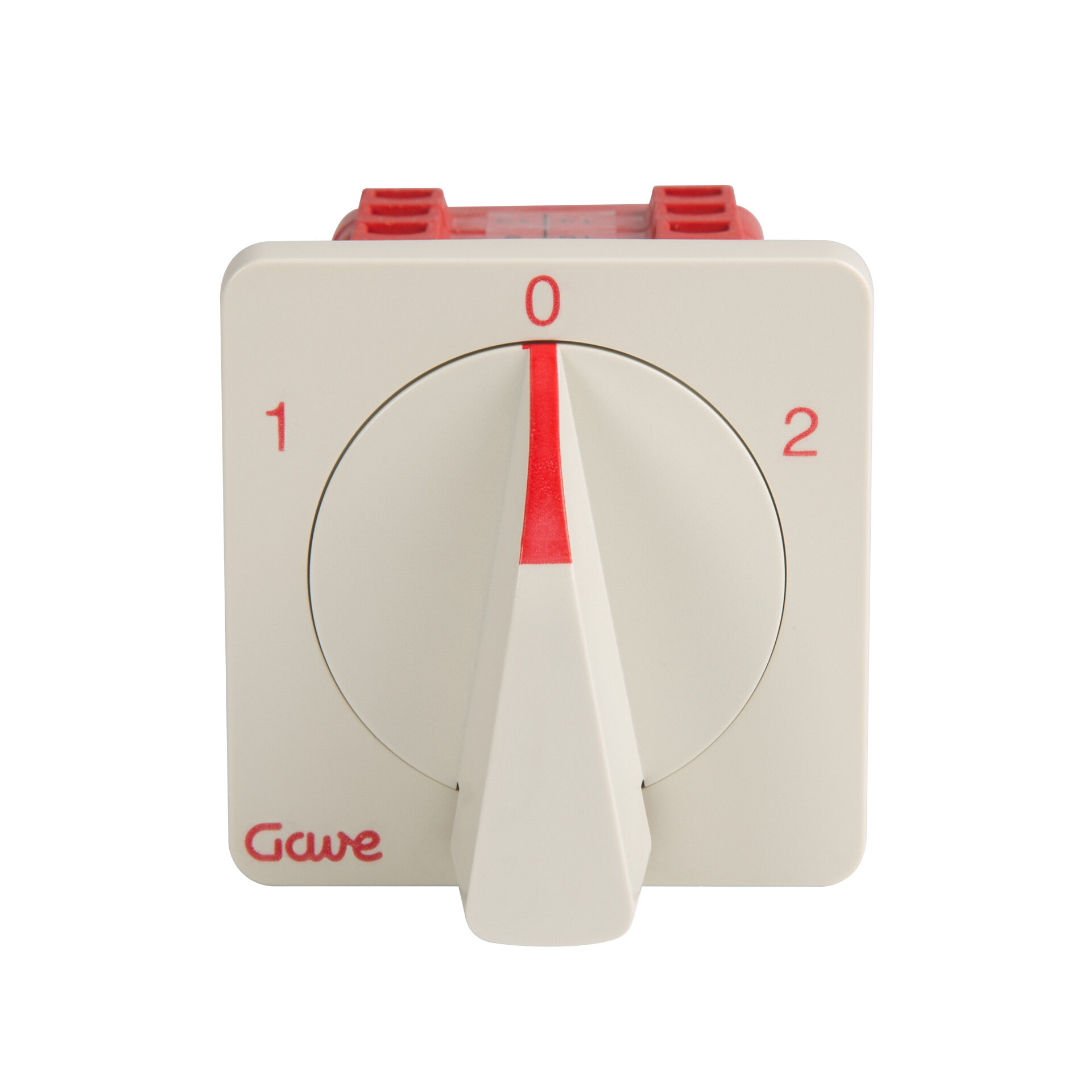 Changeover cam switch, IP20 with 1-0-2 grey front plate 64x64 for panel fixing. 4 poles 40A. Size D1. Ergonomic screwless quick-mount handle. Connection with cage terminals for 6-16 mm² cable. Compatible with multiple accessories from the A5 series.