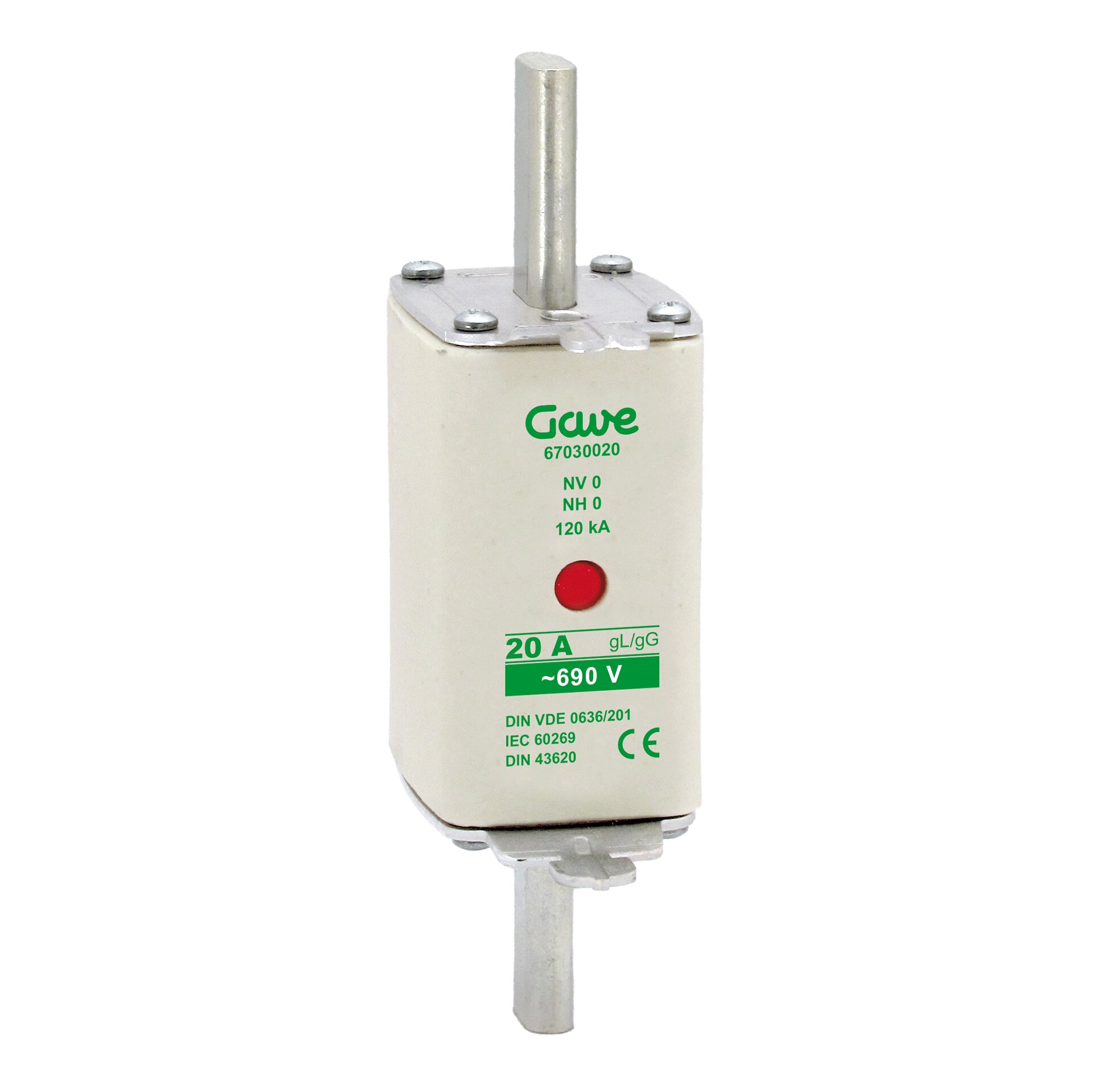 NH0 knife fuse 20A Nominal current with class AM protection curve. Suitable for the protection of engines, transformers and equipment with high boot tips. For tensions up to 690V offers protection against overload and short circuit with a 120KA Rupture capacity up to 500V and 80KA for 690V. Ceramic highly resistant to thermal shocks and pressure. Copper contacts with silver bath and specially for easy introduction into the fuse base. Central melting indicator For quick visualization of the fuse status, spikelet explorer of the stainless steel indicator reverses more reliability when avoiding corrosion and aging problems.