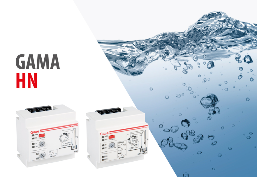 - HN1PAR Control de nivel con dos relés de salida y alternancia