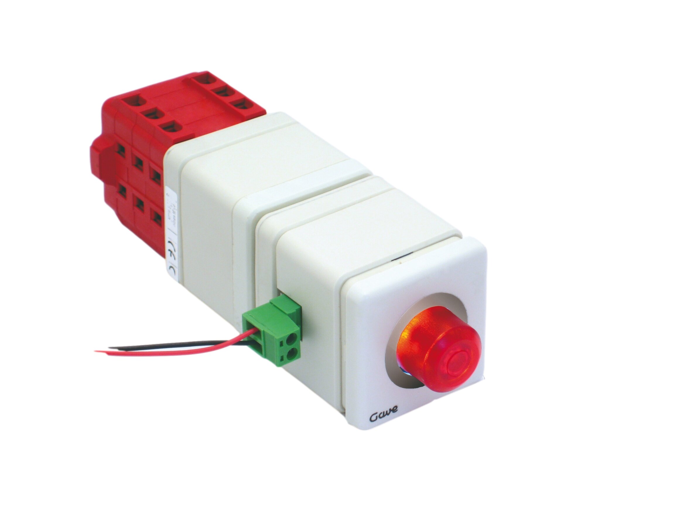 Conmutador de empuje con pulsador luminoso color rojo iluminado por leds. Fijación frontal 36x36. Multitensión de alimentación 24-240Vac / 24-110Vdc. Contactos 2 NA y 2 NC de 25A. Conexión por bornes de jaula de 1,5-6mm2