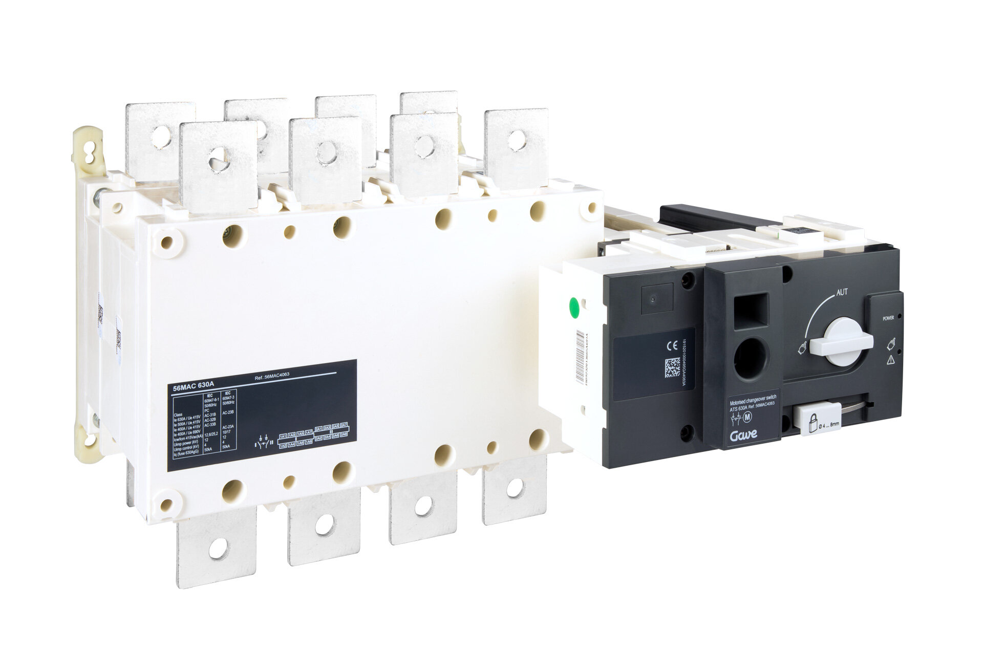Conmutador motorizado 1-0-2 de la serie 56MAC de 4 polos 630A. Tamaño B5 de medidas 260x454x321. Opera en cargas AC-23A 500V y cargas AC31/33 415V. Alimentación de la motorización 230V (166/332). Utiliza una lógica de control por impulsos. Las altas prestaciones de los materiales utilizados le confieren una alta resistencia térmica y dinámica. Accesoriable con pletinas de puenteado, contactos auxiliares, cubrebornes, pantallas de protección, barreras de separación de fases.