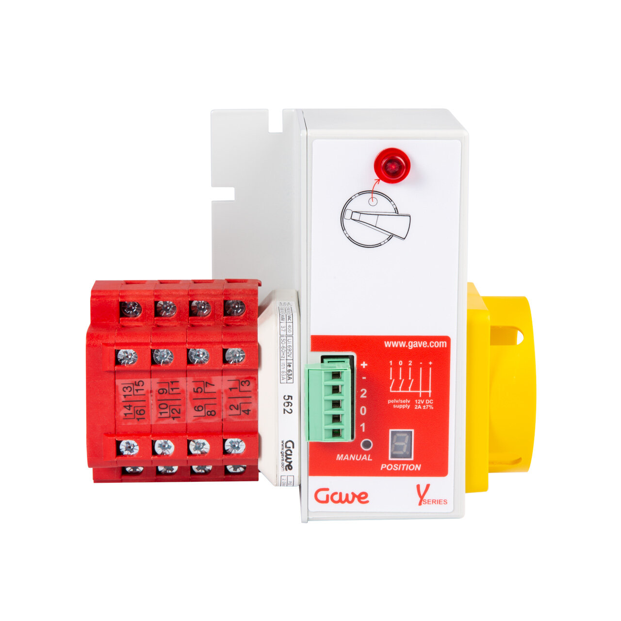 Conmutador motorizado 1-0-2 de 4 polos 63A AC22 con alimentación 12Vdc del bloque motor. Las entradas de alimentación se conectan por la parte superior de conmutador y la salida a carga se conecta en la parte inferior. Tamaño D1 dimensiones 135x140x80, incluye contacto auxiliar de 12A. Fijación fondo armario. Integrados los puentes interiores, el interbloqueo mecánico y el eléctrico. Operación local manual de emergencia, incluye mando extraible y bloqueable por candado. Display de posición del conmutador y contador de operaciones. Lógica de control por impulsos. Protección contra fallo de tensión a la alimentación del bloque motor. Conexionado por bornes de jaula para cables de 6-16mm2.
