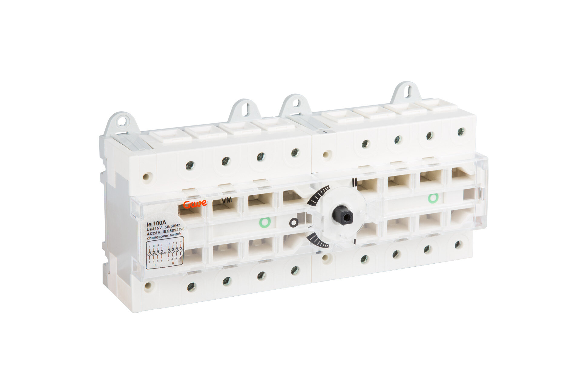 Conmutador modular 4 polos 100A con corte plenamente aparente y visibilidad de los contactos. Fijación sobre carril Din o placa de fondo armario compatible con cuadro modular con apertura frontal de 45mm. Medidas 115x215x70. Conexionado mediante bornes de jaula 4-50mm2. Se suministra sin mando, accesoriable con mandos, ejes prolongados, puentes de unión y contactos auxiliares.