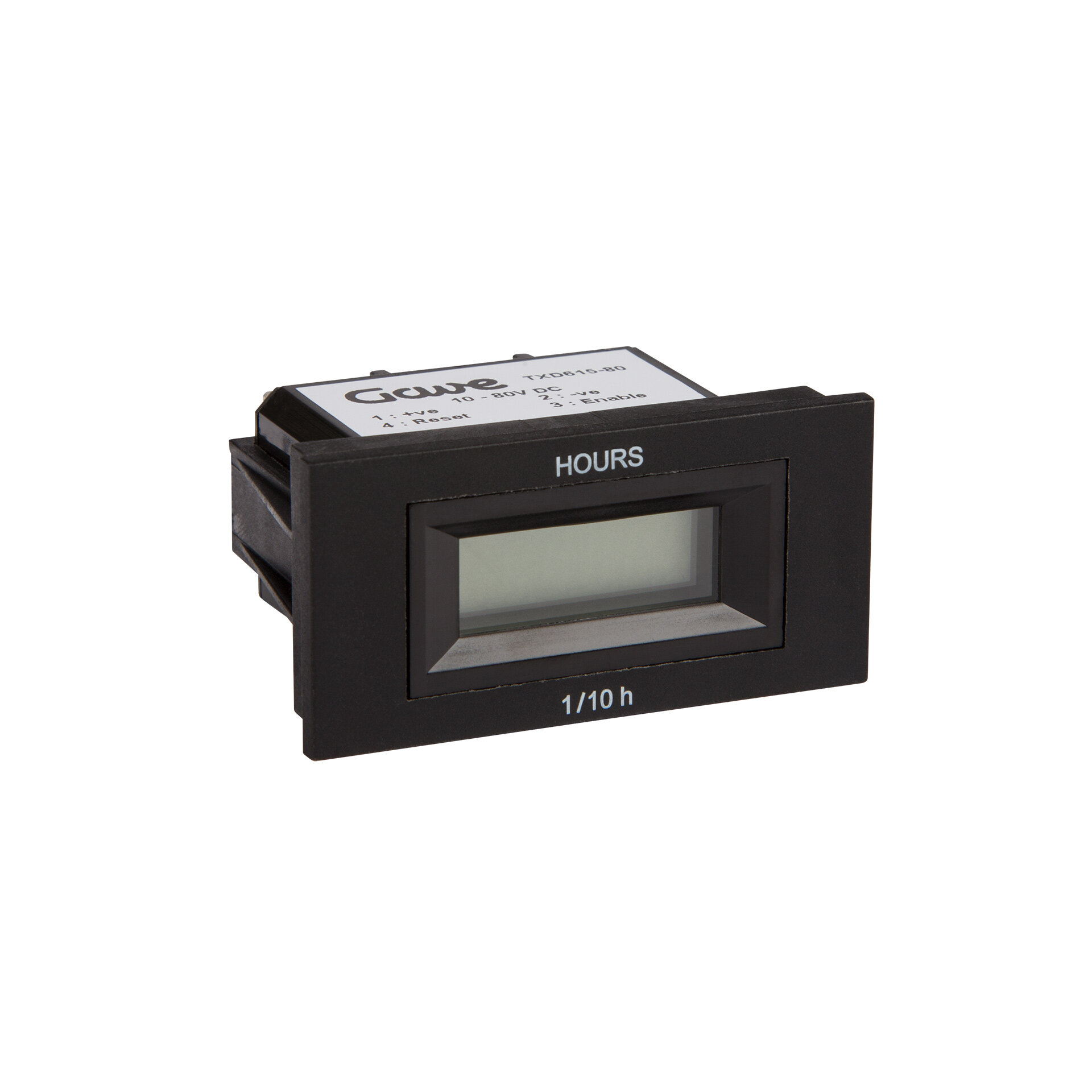Cuentahoras digital, alimentación 85-265V AC 50/60Hz, consumo energía 0,8 VA, 6 dígitos, montaje empotrado, parte frontal 48mmx24mm, protección IP54 (únicamente en la parte frontal), posibilidad de reseteado mediante la conexión de un pulsador entre los pines 1-4.