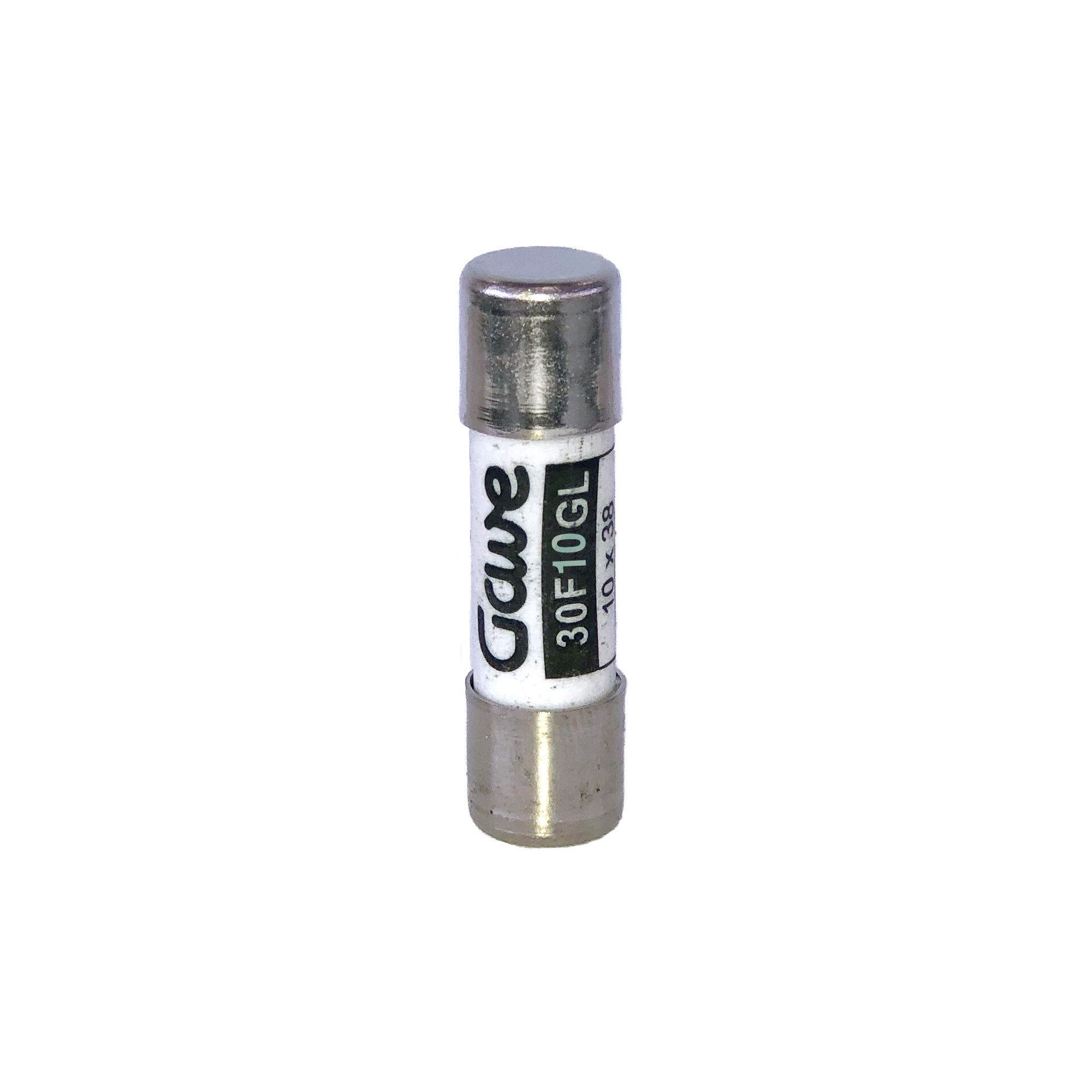Cartucho fusible cilindrico tamaño 0 de dimensiones 10x38 y corriente nominal de 10A con curva de protección clase gG. Adecuado para la protección de líneas o equipos para tensiones hasta 500V ofrece protección contra la sobrecarga y cortocircuito con una capacidad de ruptúra de 120kA. Cerámica altamente resistente a los choques térmicos y a la presión. Contactos de cápsula en cobre con baño de plata.