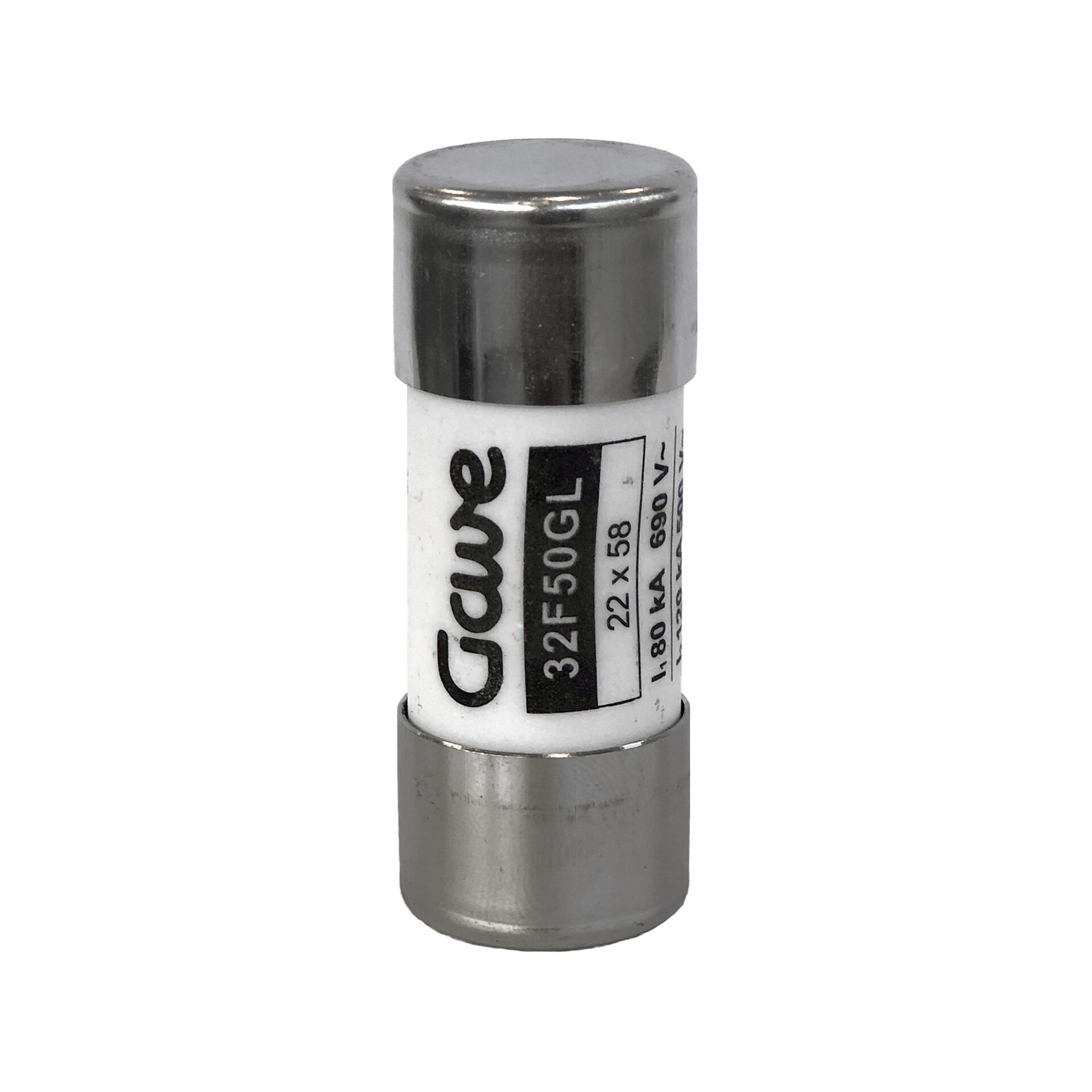 Cartucho fusible cilindrico tamaño 2 de dimensiones 22x58 y corriente nominal de 50A con curva de protección clase gG. Adecuado para la protección de líneas o equipos para tensiones hasta 690V ofrece protección contra la sobrecarga y cortocircuito con una capacidad de ruptúra de 120kA hasta 500V y 80kA para 690V. Cerámica altamente resistente a los choques térmicos y a la presión. Contactos de cápsula en cobre con baño de plata.