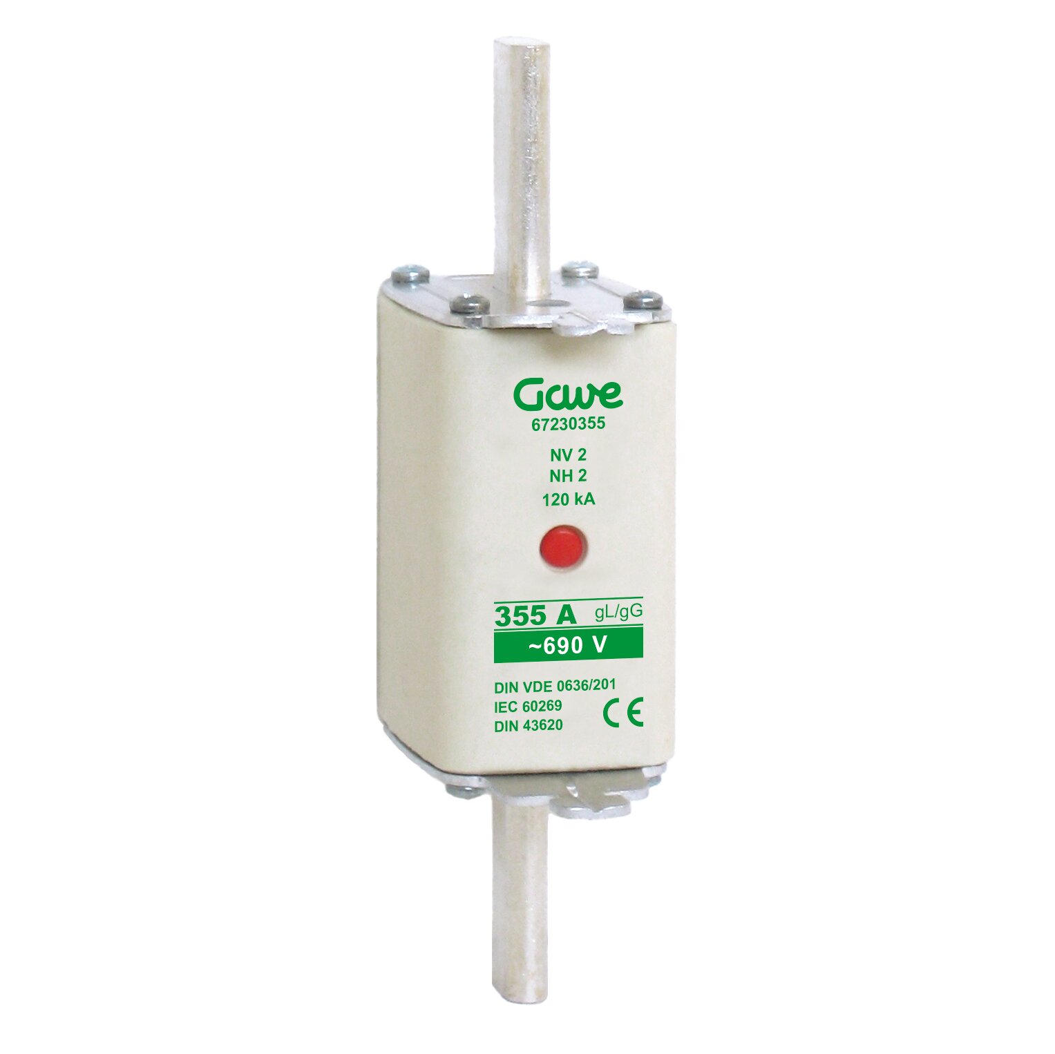 Fusible de cuchilla NH tamaño 2 corriente nominal de 355A con curva de protección clase aM. Adecuado para la protección de motores, transformadores y equipos con elevadas puntas de arranque. Para tensiones hasta 690V ofrece protección contra la sobrecarga y cortocircuito con una capacidad de ruptúra de 120kA hasta 500V y 80kA para 690V. Cerámica altamente resistente a los choques térmicos y a la presión. Contactos en cobre con baño de plata y con forma especial para una fácil introducción en la base fusible. Indicador central de fusión para una rápida visualización del estado del fusible, muelle explusor del indicador en acero inoxidable revierte en mayor fiabilidad al evitar problemas de corrosión y envejecimiento.