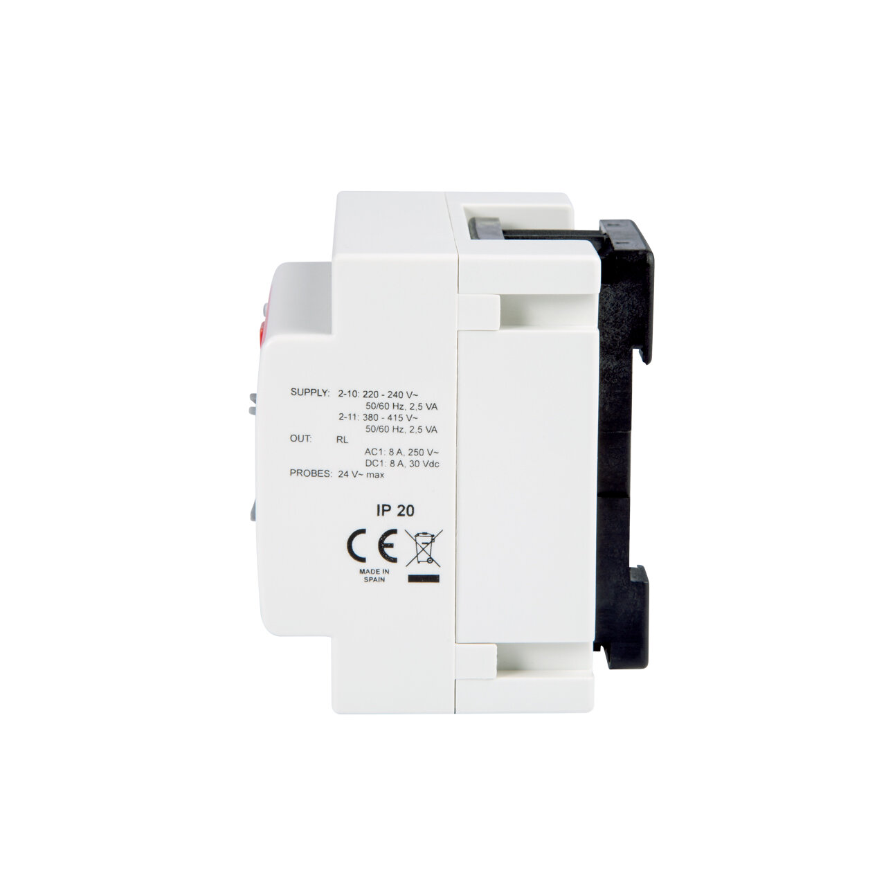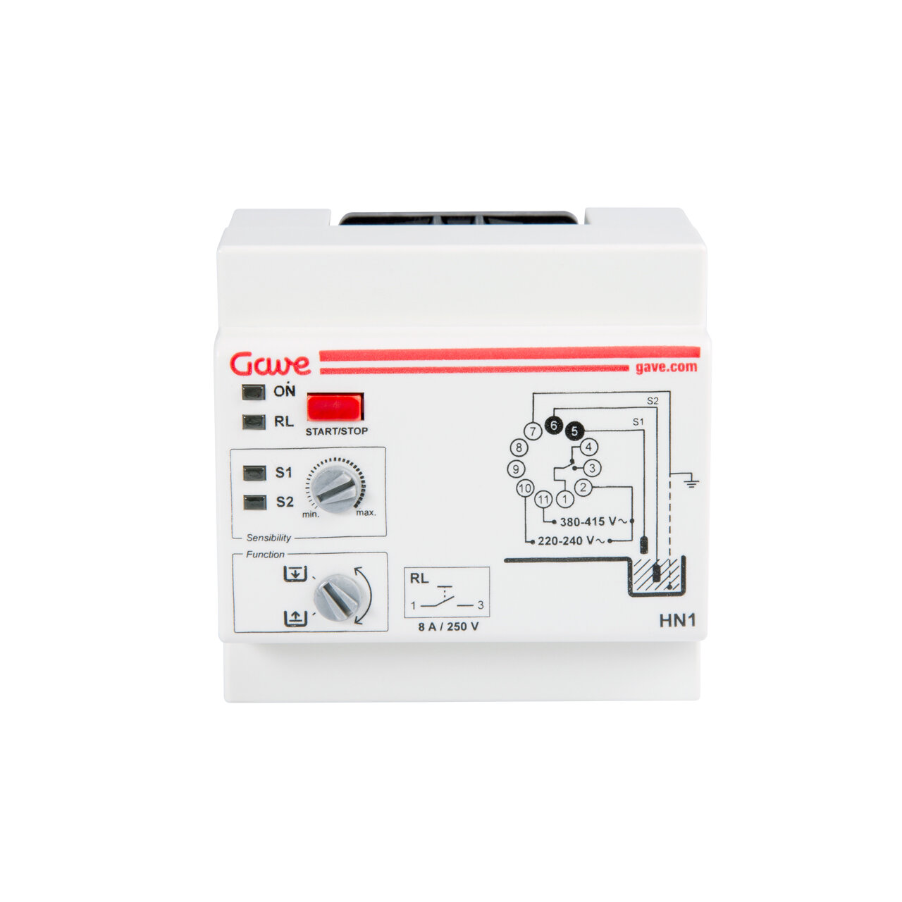Interruptor de nivel simple para pozo o depósito enchufable sobre base undecal. Entregado con sondas y base. Bitensión 230/400 V AC. Montaje sobre perfil DIN o sobre panel. Ancho 4 módulos (70 mm). Consumo 2,5 VA. Poder de corte contactos salida 8 A/250 V AC cosφ=1. Selector de función vaciado/llenado. Sensibilidad ajustable. Indicación LED de las sondas de nivel. Función Start/Stop. Función OVR/Test.