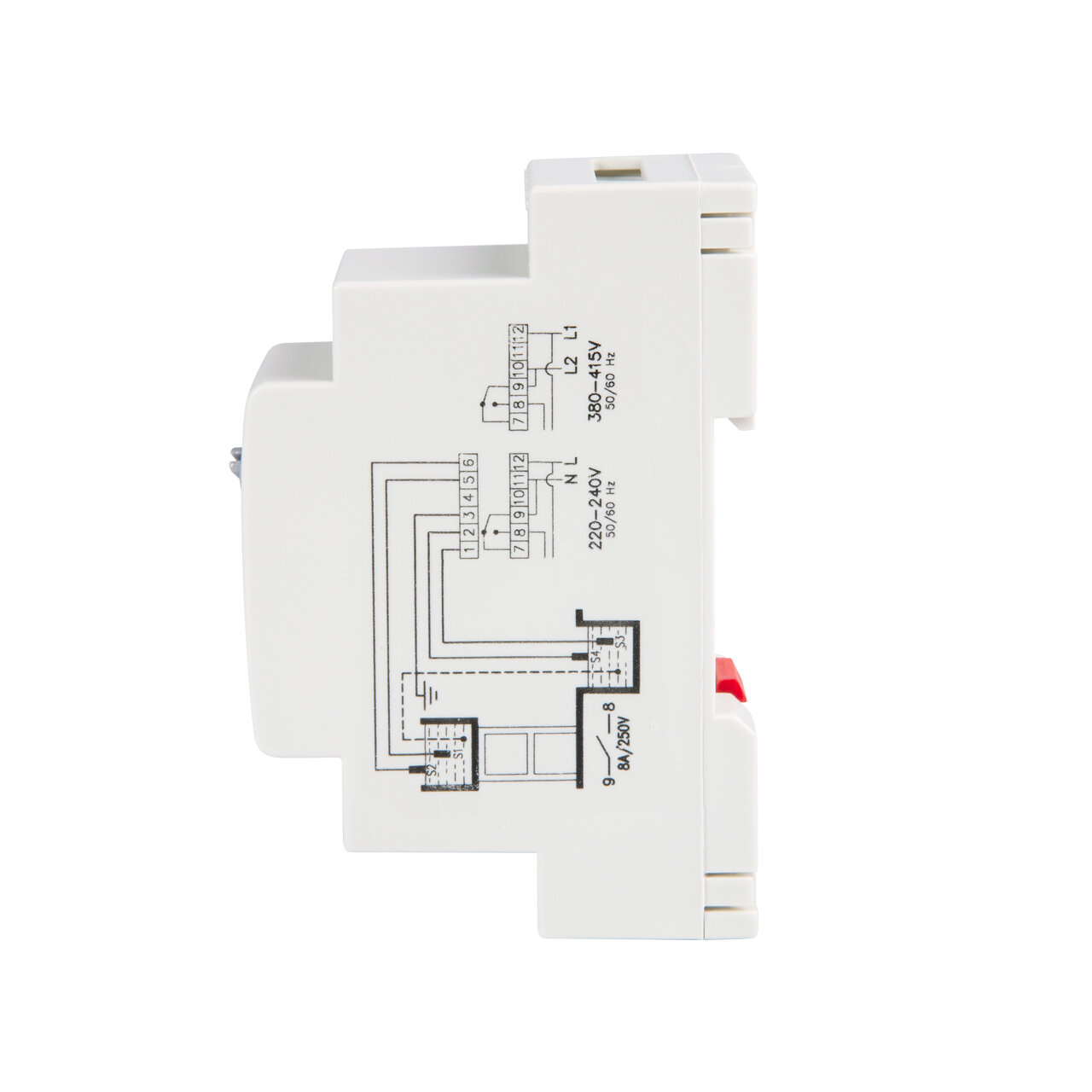 Interruptor de nivel doble para pozo y depósito. Bitensión 230/400 V AC. Montaje sobre perfil DIN o sobre panel. Ancho 2 módulos (35 mm). Consumo 2 VA. Poder de corte contactos salida 8 A/250 V AC cosφ=1. Sensibilidad ajustable.