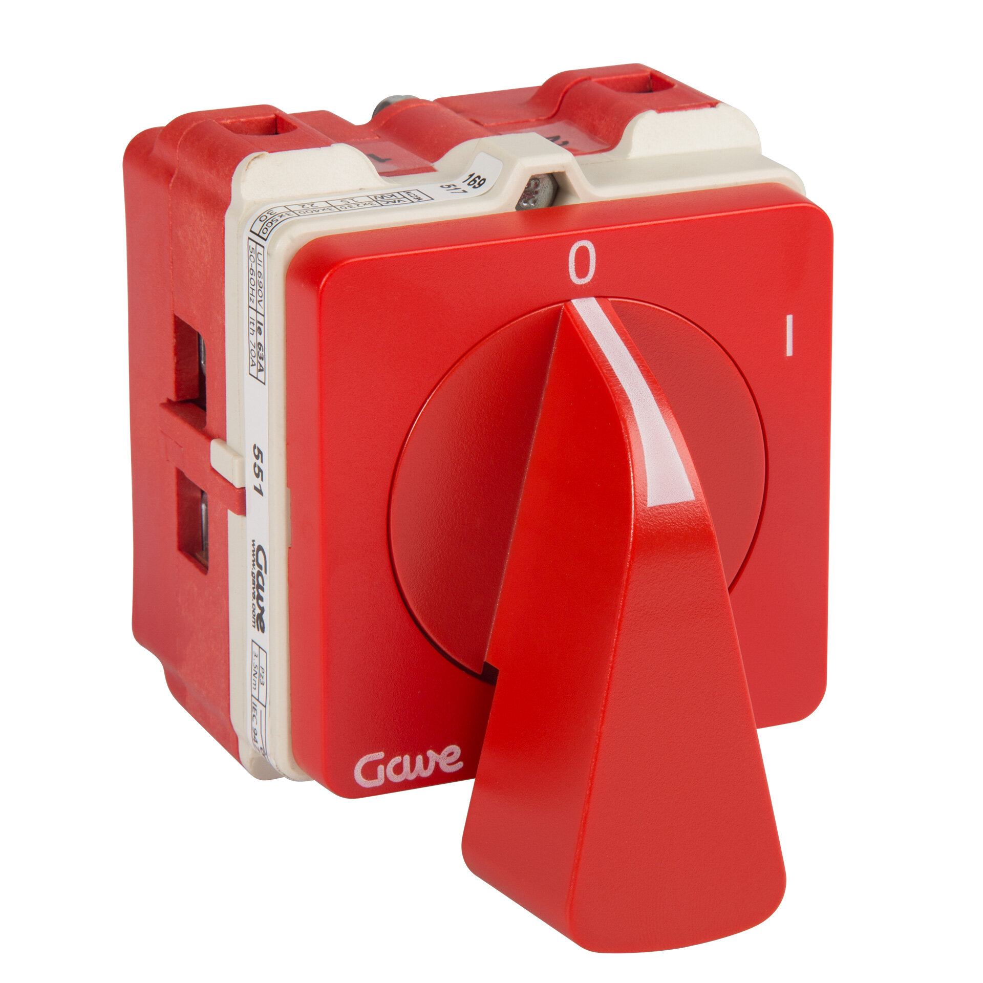Interruptor-seccionador de levas , IP20 con carátula 0-1 color rojo 64x64 para fijación panel. 1 polo 63A.Tamaño D2. Mando ergonómico de montaje rápido sin tornillos. Conexionado con bornes de jaula para cable 16-50 mm². Compatible con múltiples accesorios de la serie A5.