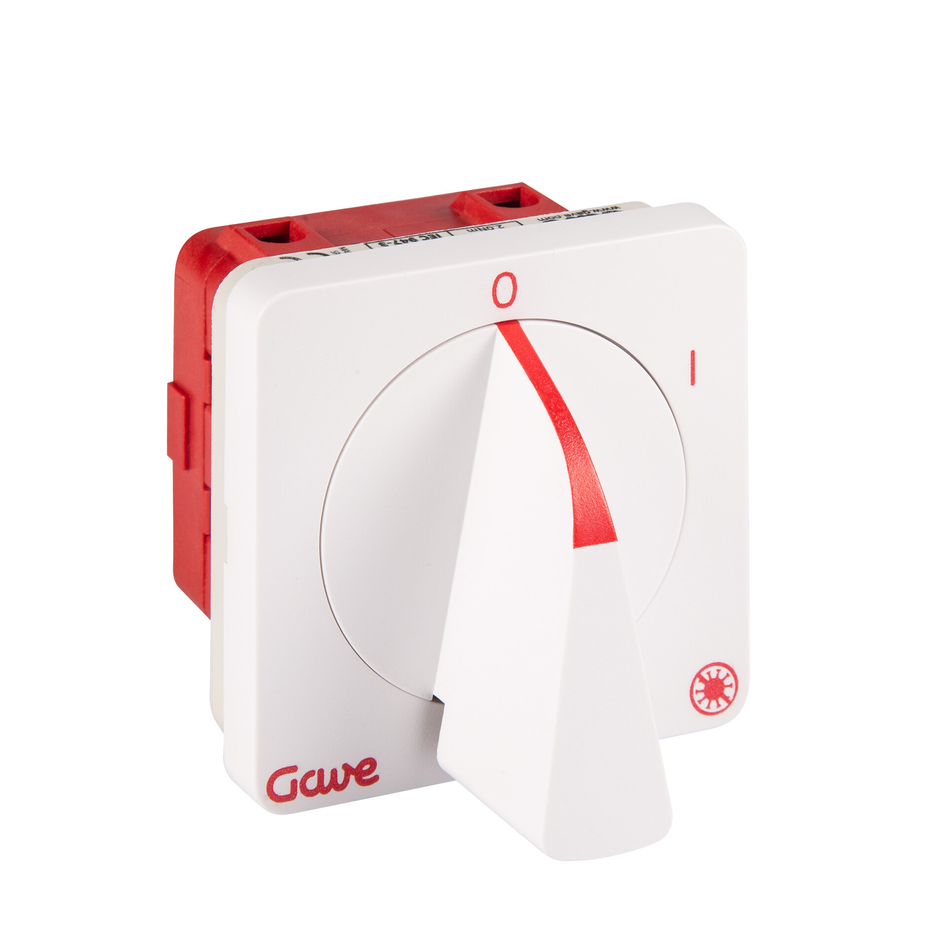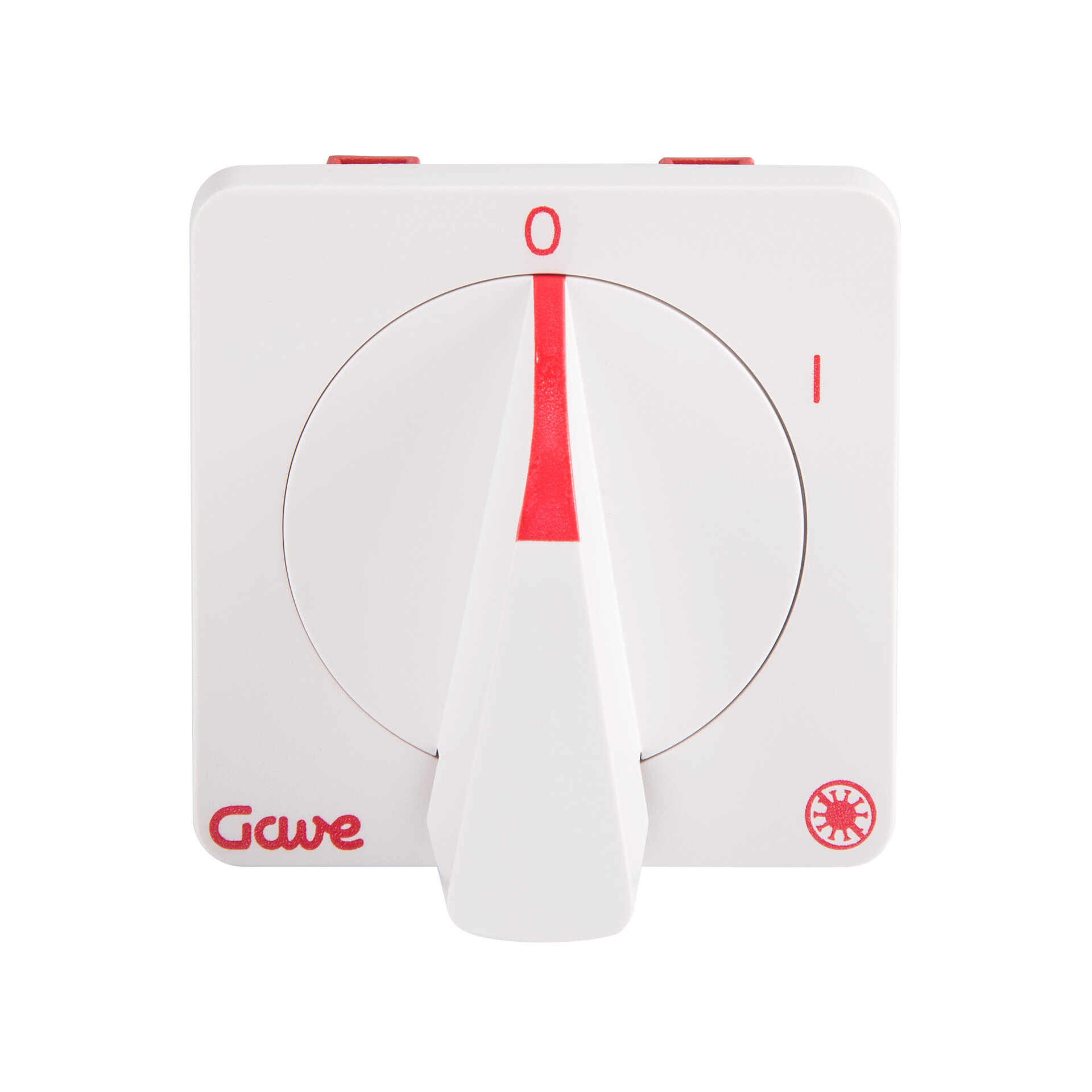 Interruptor-seccionador de levas IP20. Conjunto carátula 0-1 64x64 con tratamiento antimicrobiano color blanco RAL9010 para fijación panel. 2 polos 40A.Tamaño D1. Mando ergonómico de montaje rápido sin tornillos. Conexionado con bornes de jaula para cable 6-16 mm². Compatible con múltiples accesorios de la serie A5.