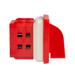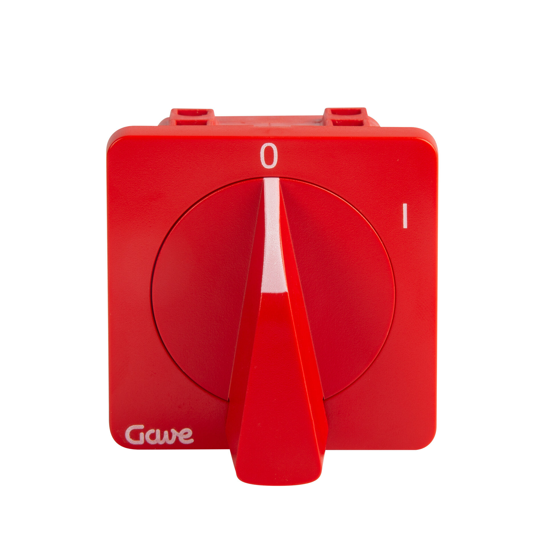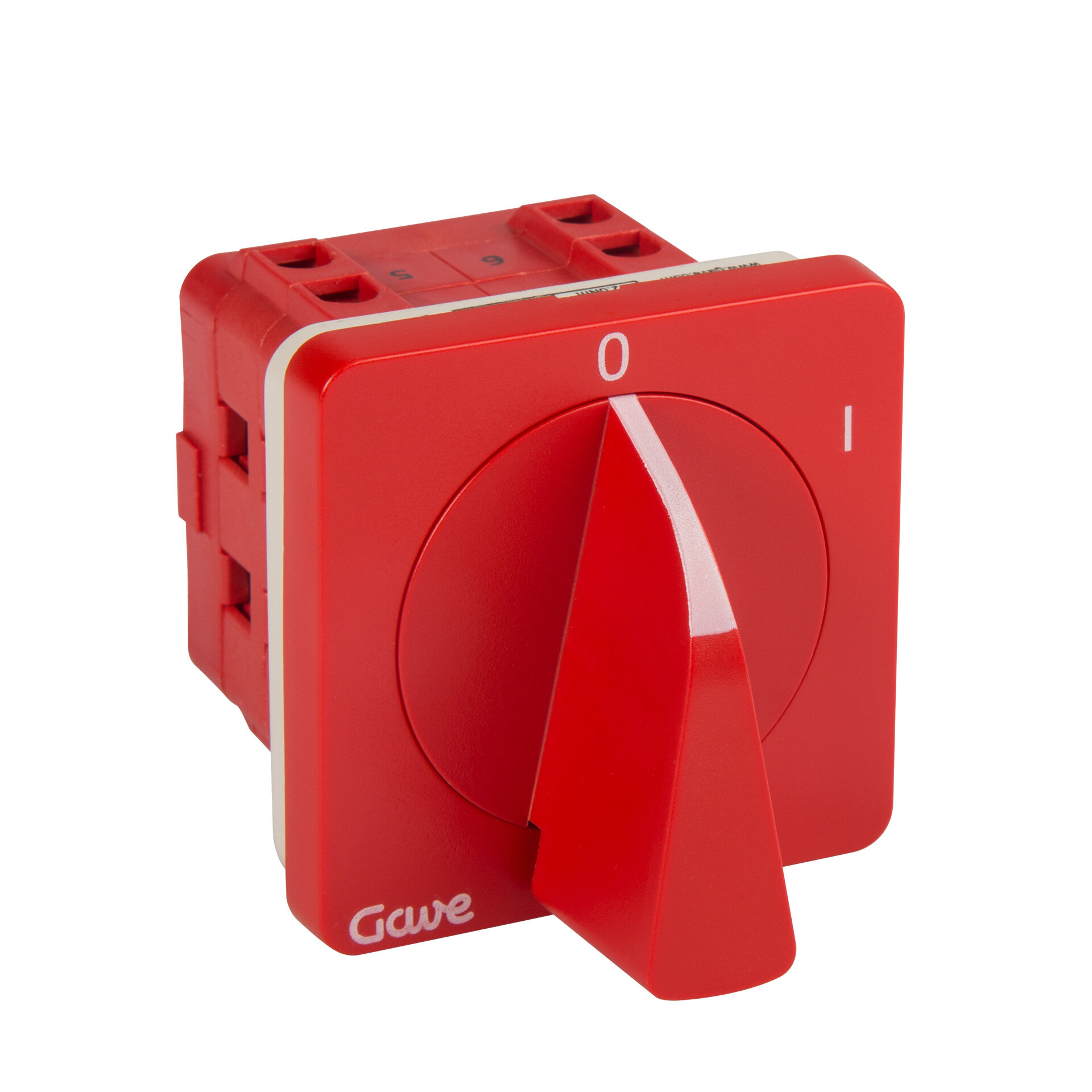 Interruptor-seccionador de levas , IP20 con carátula 0-1 color rojo 64x64 para fijación panel. 4 polos 32A. Tamaño D1. Mando ergonómico de montaje rápido sin tornillos. Conexionado con bornes de jaula para cable 6-16 mm². Compatible con múltiples accesorios de la serie A5.