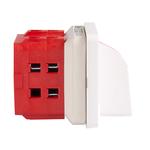 Interruptor-seccionador de levas IP20. Conjunto carátula 0-1 64x64 con tratamiento antimicrobiano color blanco RAL9010 para fijación panel. 4 polos 32A.Tamaño D1. Mando ergonómico de montaje rápido sin tornillos. Conexionado con bornes de jaula para cable 6-16 mm². Compatible con múltiples accesorios de la serie A5.