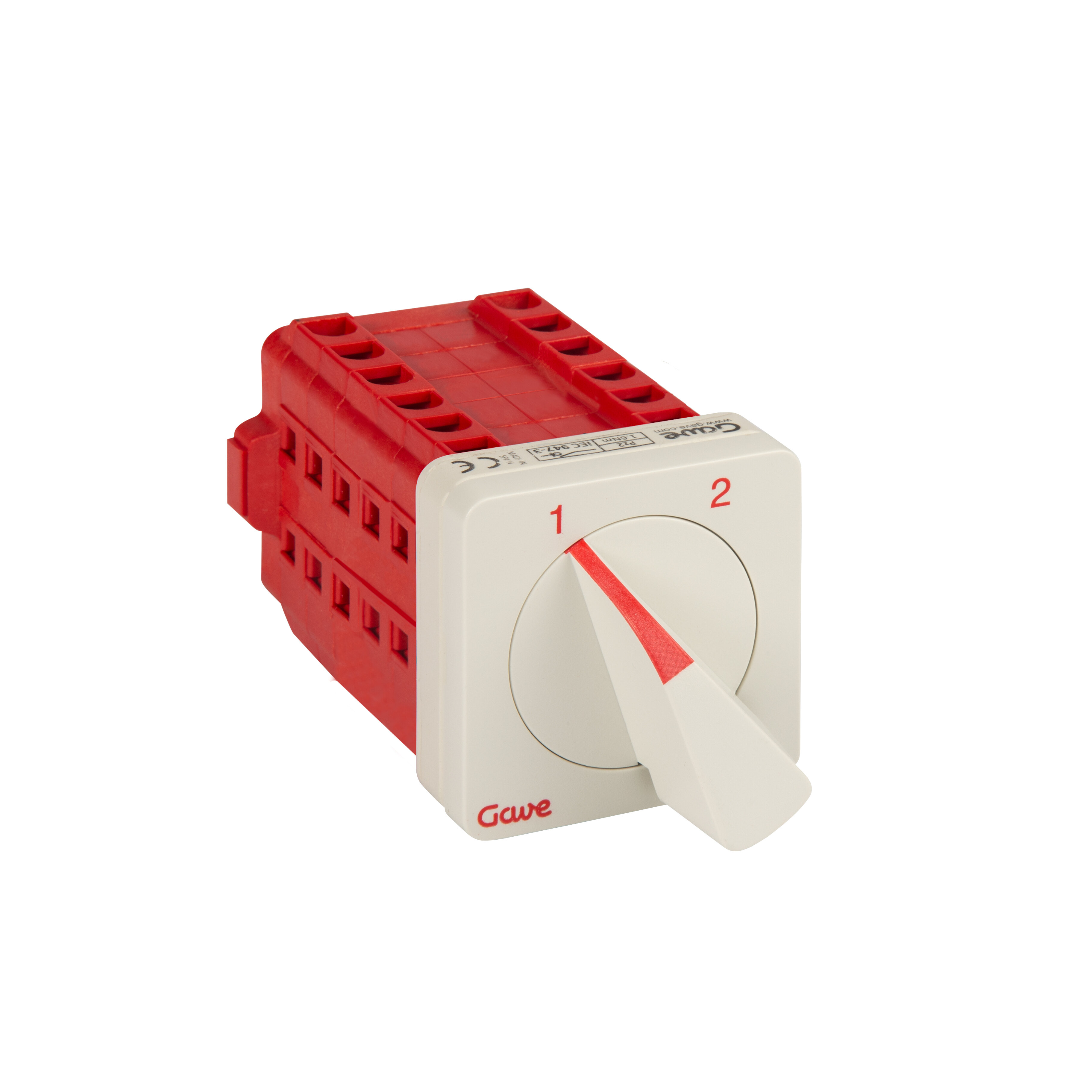 Conmutador de levas , IP20 con carátula 1-2 color gris 48x48 para fijación panel. 6 polos 16A.Tamaño D0. Mando ergonómico de montaje rápido sin tornillos. Conexionado con bornes de jaula para cable 2,5-6 mm². Compatible con múltiples accesorios de la serie A5.