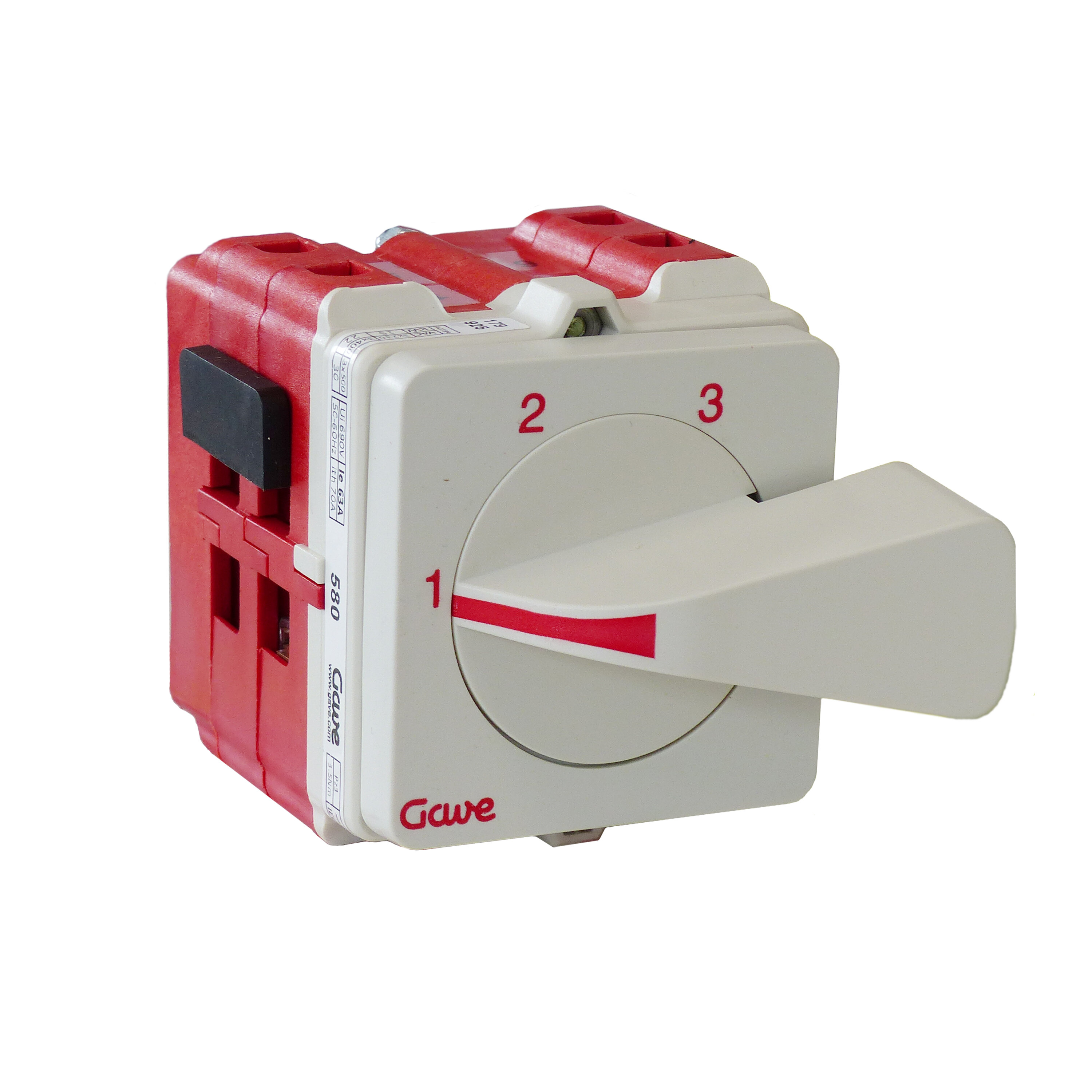Conmutador de levas , IP20 con carátula 1-2-3 color gris 64x64 para fijación panel. 1 polo 63A.Tamaño D2. Mando ergonómico de montaje rápido sin tornillos. Conexionado con bornes de jaula para cable 16-50 mm². Compatible con múltiples accesorios de la serie A5.