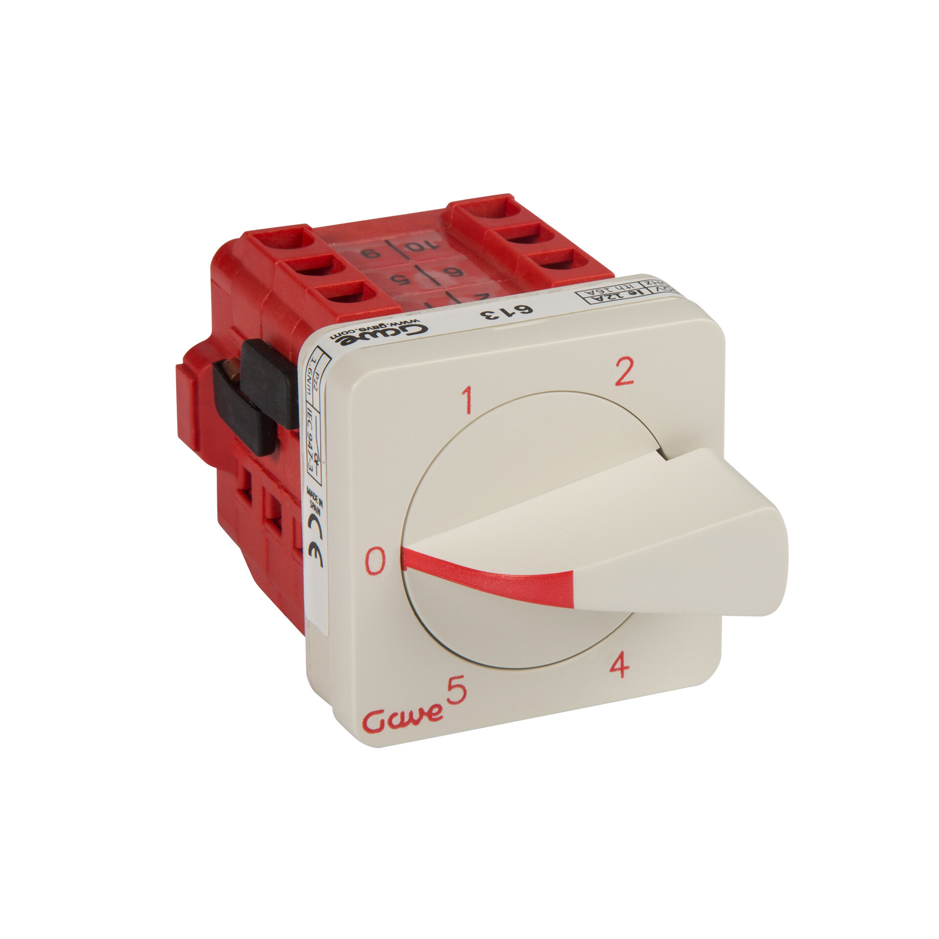 Conmutador de levas , IP20 con carátula 0-1-2-3-4-5 color gris 48x48 para fijación panel. 1 polos 25A.Tamaño D0. Mando ergonómico de montaje rápido sin tornillos. Conexionado con bornes de jaula para cable 2,5-6 mm². Compatible con múltiples accesorios de la serie A5.