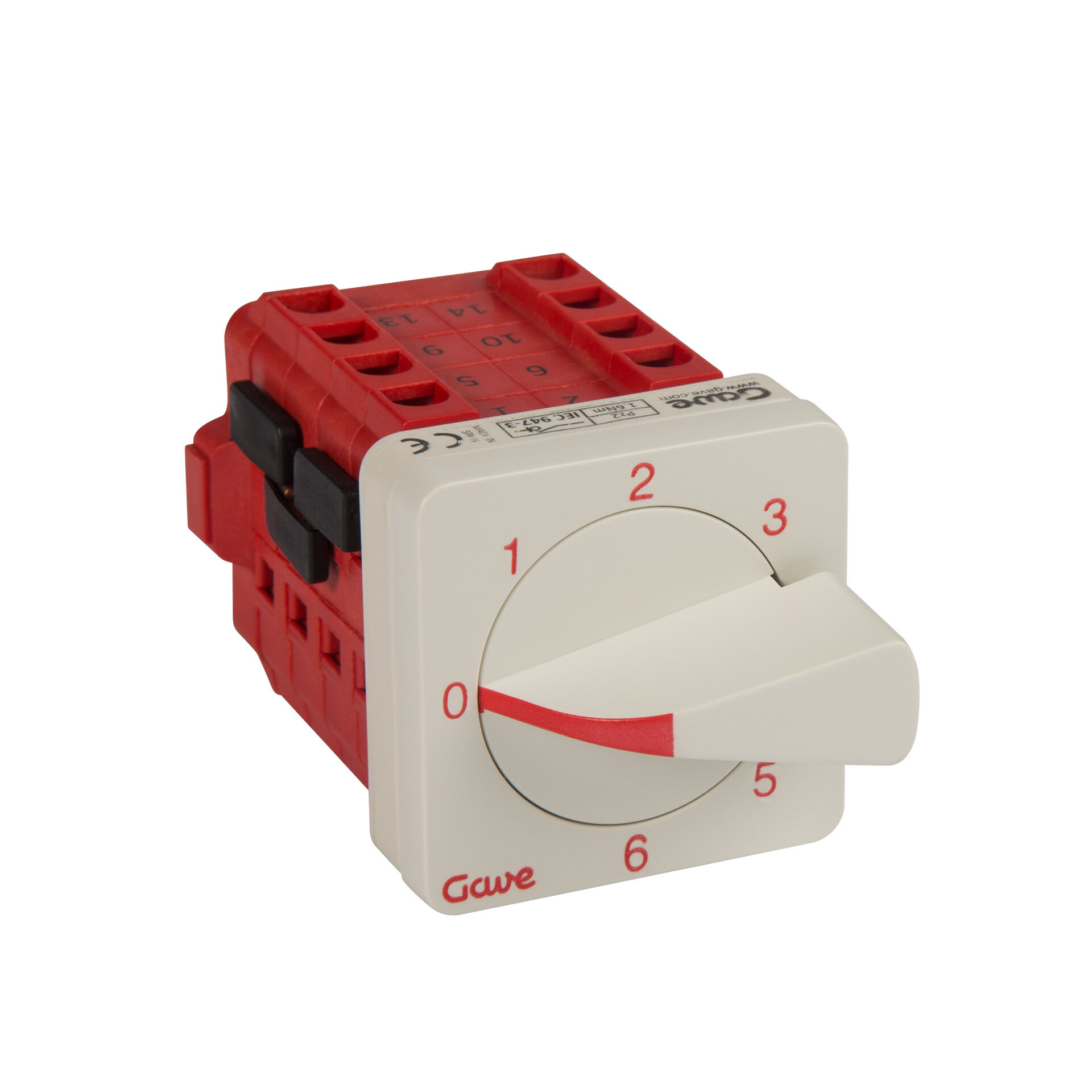 Conmutador de levas , IP20 con carátula 0-1-2-3-4-5-6 color gris 48x48 para fijación panel. 1 polos 12A.Tamaño D0. Mando ergonómico de montaje rápido sin tornillos. Conexionado con bornes de jaula para cable 2,5-6 mm². Compatible con múltiples accesorios de la serie A5.