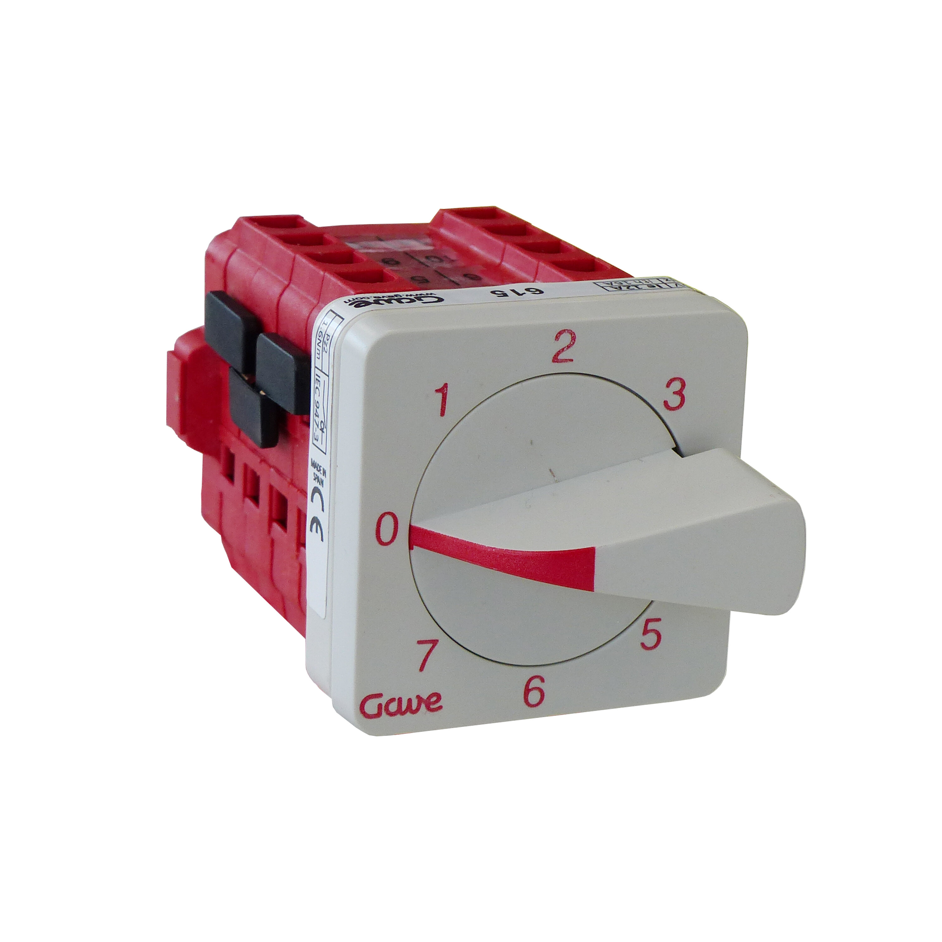 Conmutador de levas , IP20 con carátula 0-1-2-3-4-5-6-7 color gris 48x48 para fijación panel. 1 polos 16A.Tamaño D0. Mando ergonómico de montaje rápido sin tornillos. Conexionado con bornes de jaula para cable 2,5-6 mm². Compatible con múltiples accesorios de la serie A5.
