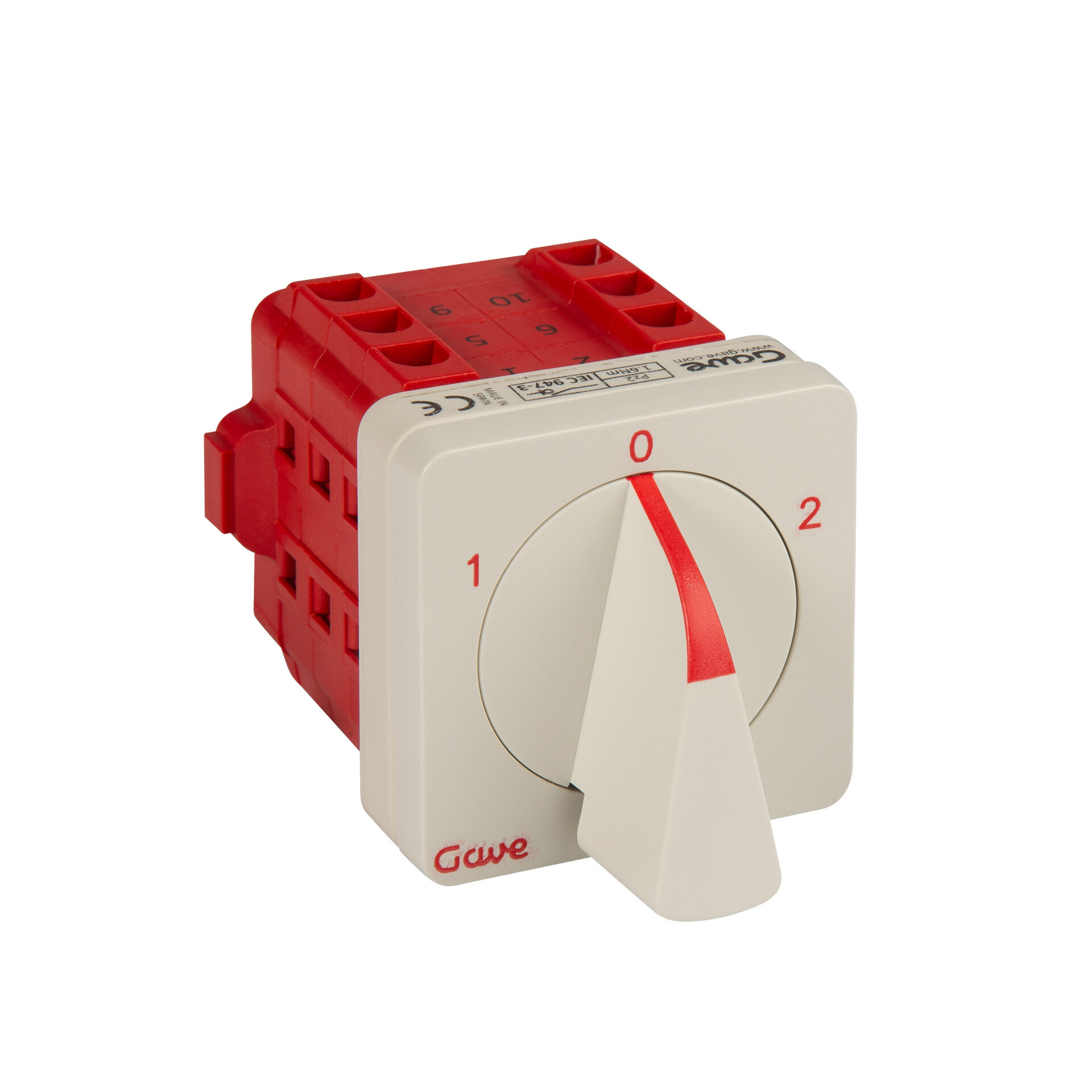 Inversor de levas tripolar , IP20 con carátula 1-0-2 color gris 48x48 para fijación panel. 3 polos 12A.Tamaño D0. Mando ergonómico de montaje rápido sin tornillos. Conexionado con bornes de jaula para cable 2,5-6 mm². Compatible con múltiples accesorios de la serie A5.