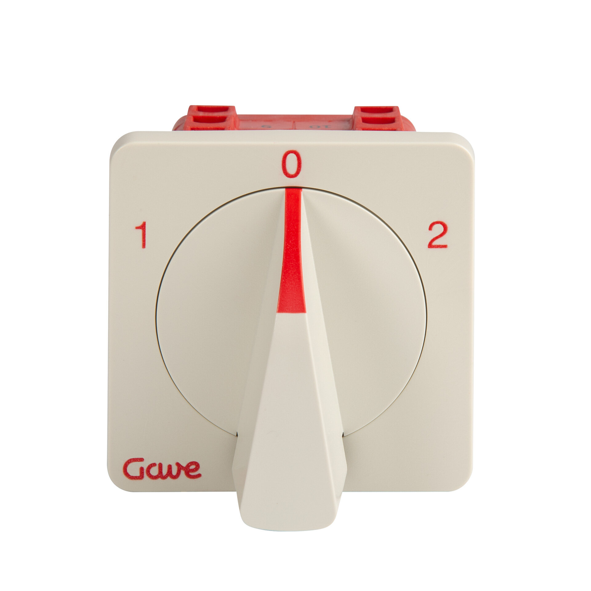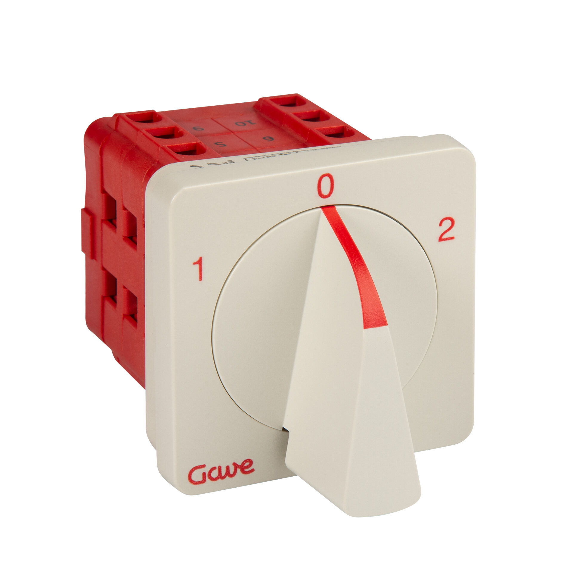 Inversor de levas tripolar , IP20 con carátula 1-0-2 color gris 64x64 para fijación panel. 3 polo 32A.Tamaño D1. Mando ergonómico de montaje rápido sin tornillos. Conexionado con bornes de jaula para cable 6-16 mm². Compatible con múltiples accesorios de la serie A5.