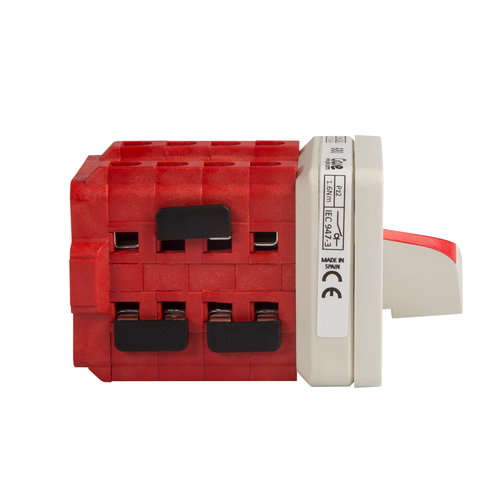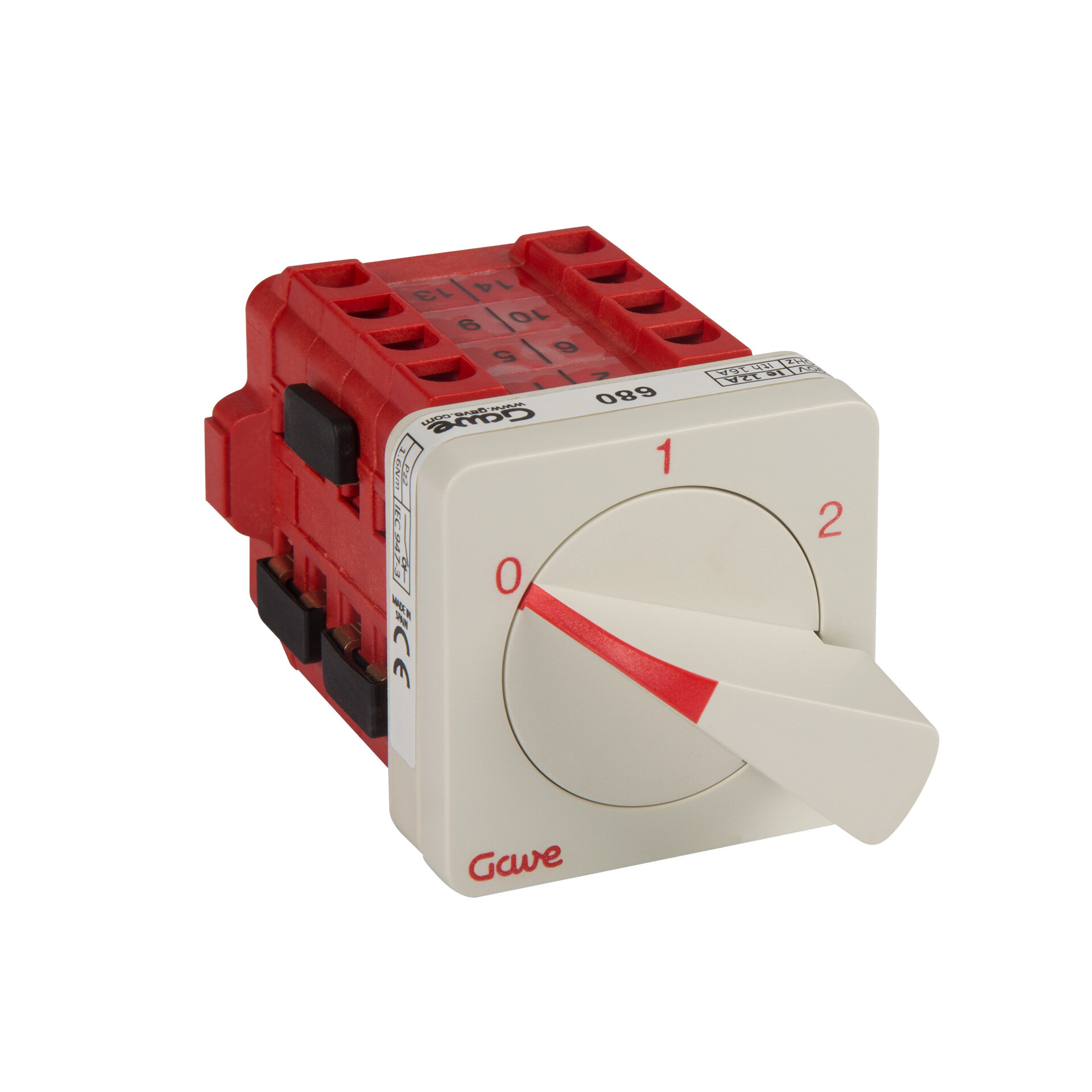 Conmutador de polos 2 velocidades DAHLANDER , IP20 con carátula 0-1-2 simple arrollamiento" color gris 48x48 para fijación panel, 12A.Tamaño D0. Mando ergonómico de montaje rápido sin tornillos. Conexionado con bornes de jaula para cable 2,5-6 mm². Compatible con múltiples accesorios de la serie A5."