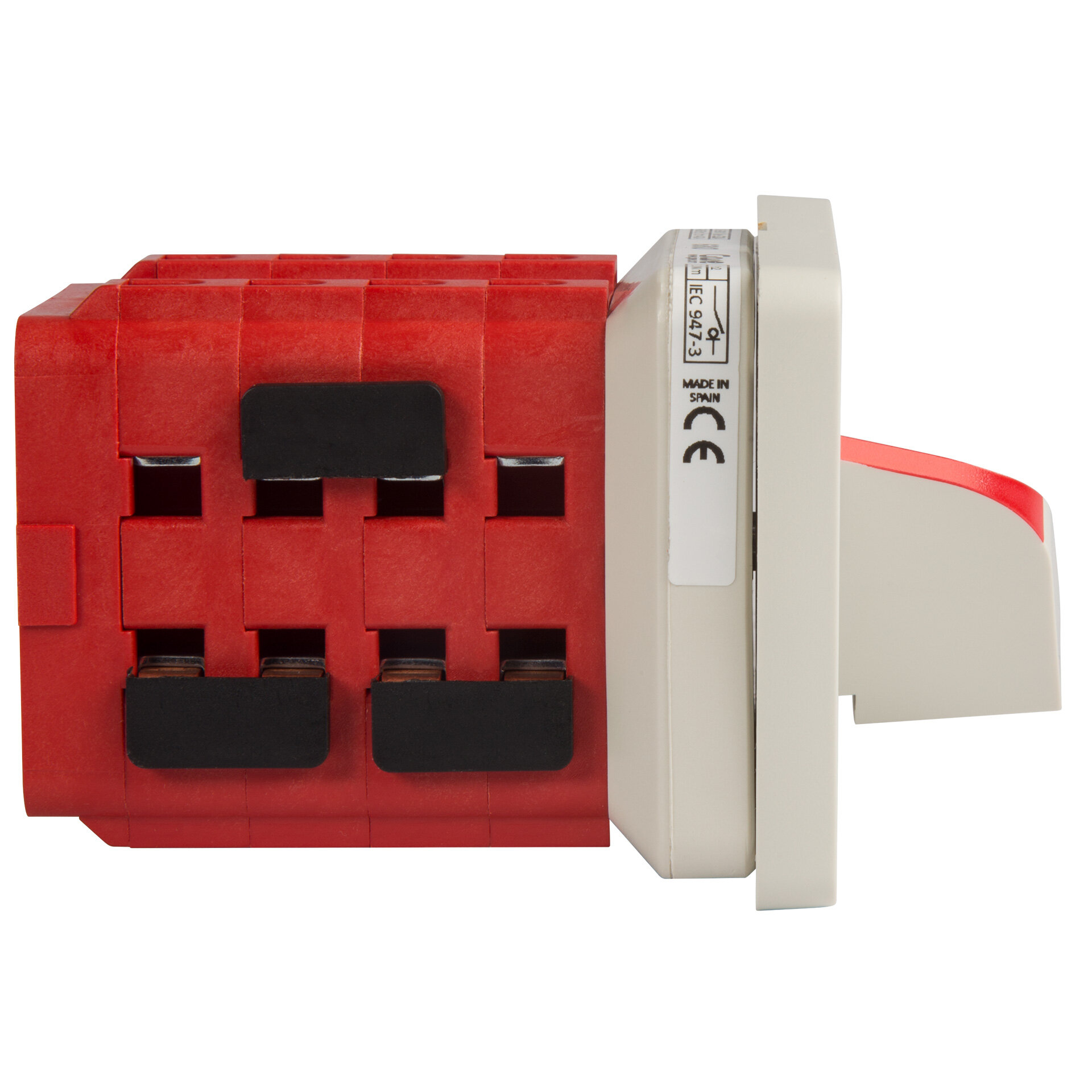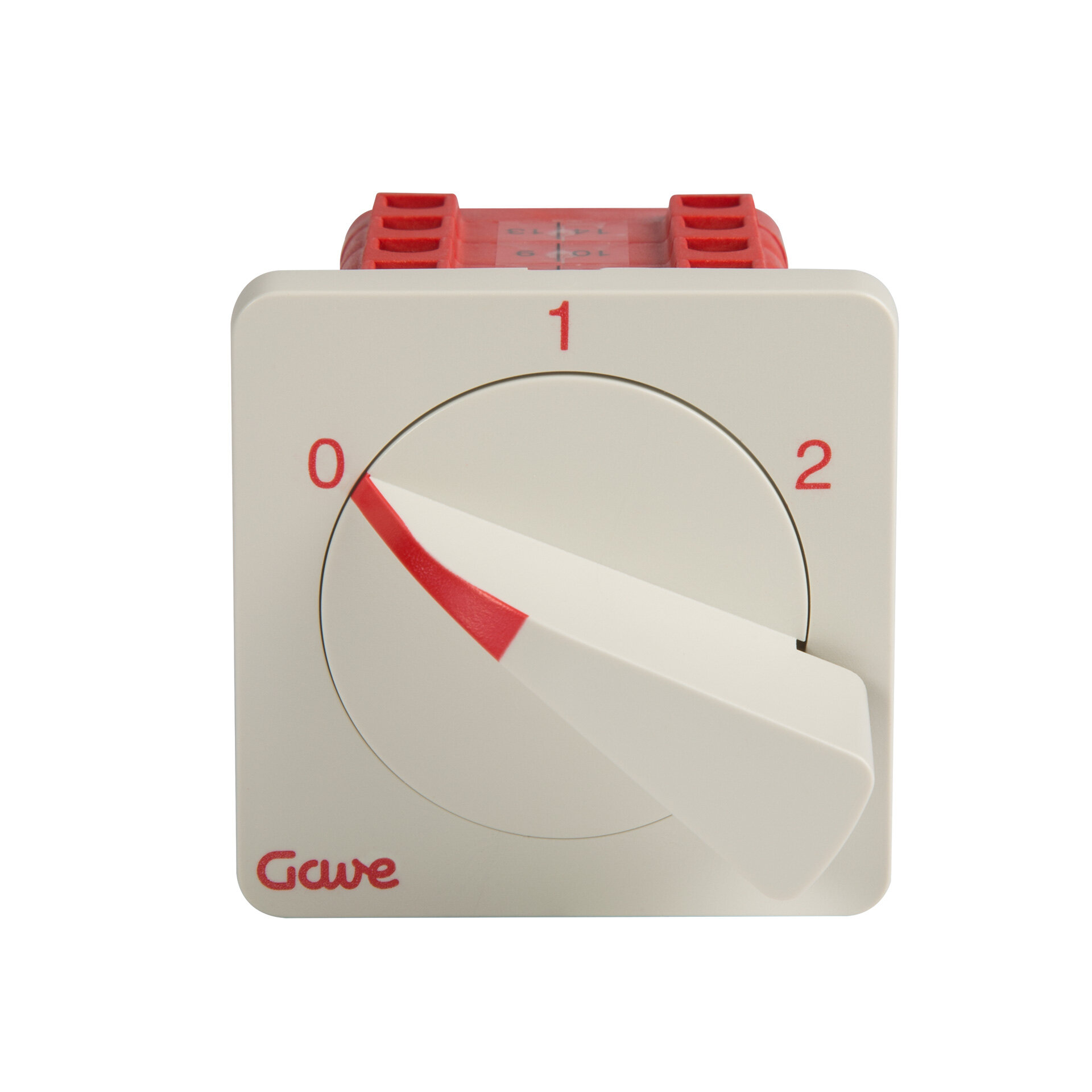 Conmutador de polos 2 velocidades DAHLANDER , IP20 con carátula 0-1-2 simple arrollamiento" color gris 64x64 para fijación panel, 25A.Tamaño D1. Mando ergonómico de montaje rápido sin tornillos. Conexionado con bornes de jaula para cable 6-16 mm². Compatible con múltiples accesorios de la serie A5."