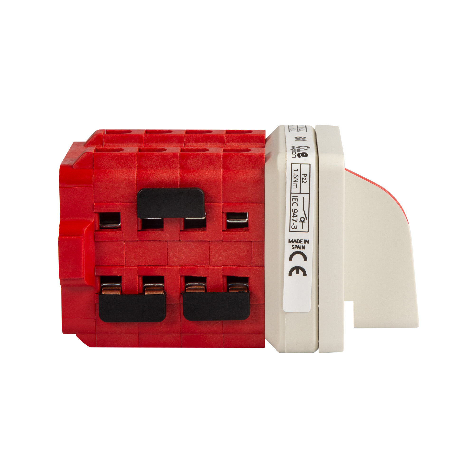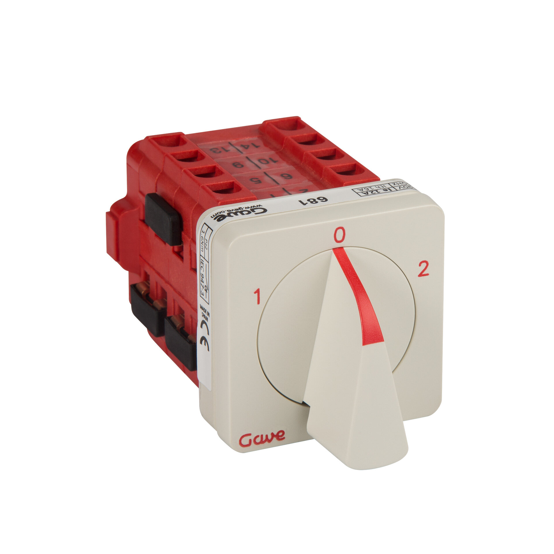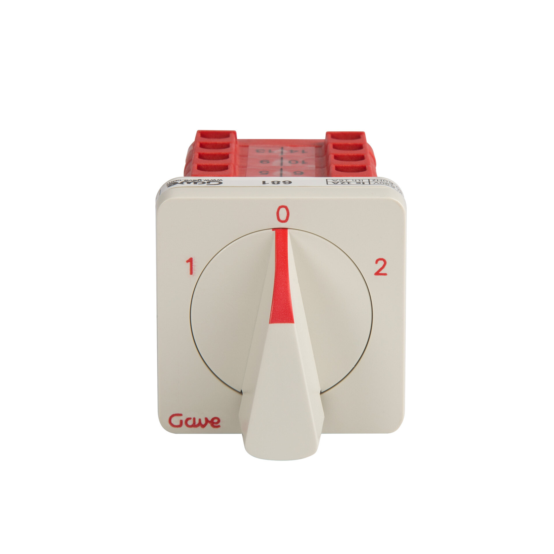 Conmutador de polos 2 velocidades DAHLANDER , IP20 con carátula 1-0-2 simple arrollamiento" color gris 48x48 para fijación panel, 12A.Tamaño D0. Mando ergonómico de montaje rápido sin tornillos. Conexionado con bornes de jaula para cable 2,5-6 mm². Compatible con múltiples accesorios de la serie A5."