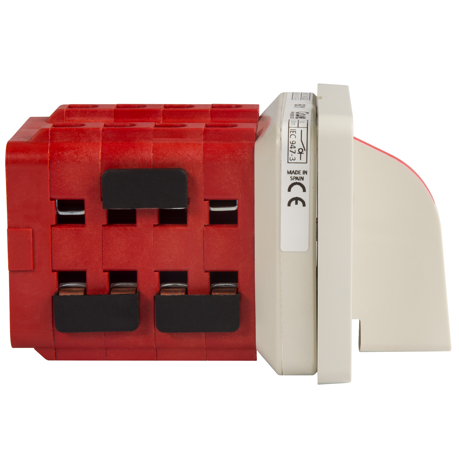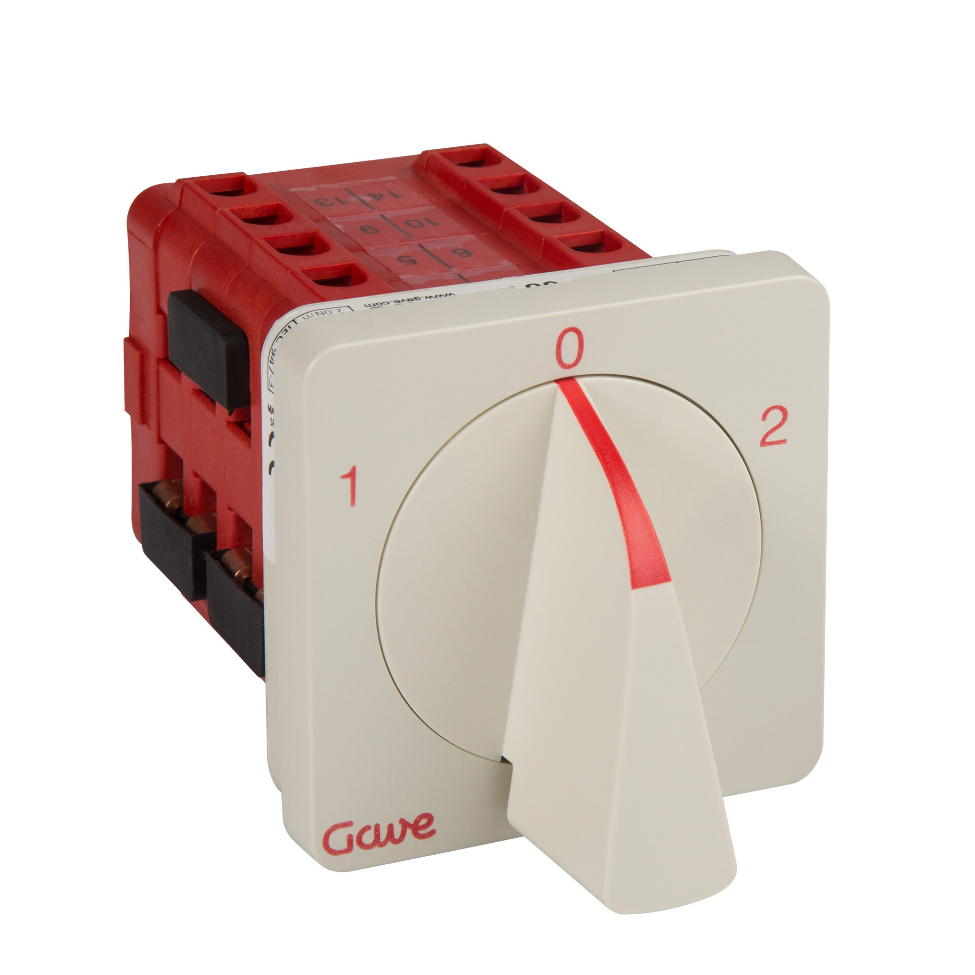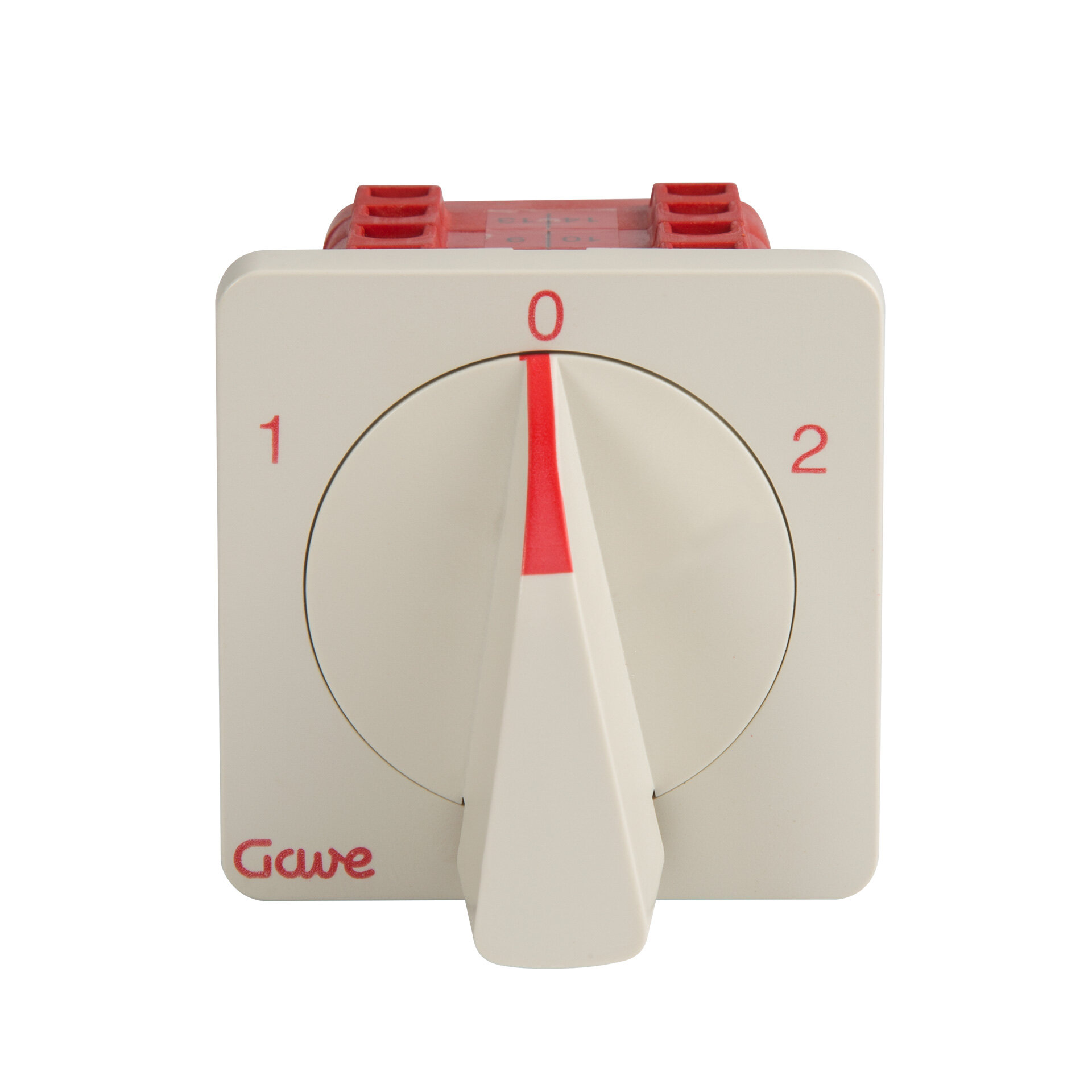 Conmutador de polos 2 velocidades DAHLANDER , IP20 con carátula 1-0-2 simple arrollamiento" color gris 64x64 para fijación panel, 32A.Tamaño D1. Mando ergonómico de montaje rápido sin tornillos. Conexionado con bornes de jaula para cable 6-16 mm². Compatible con múltiples accesorios de la serie A5."