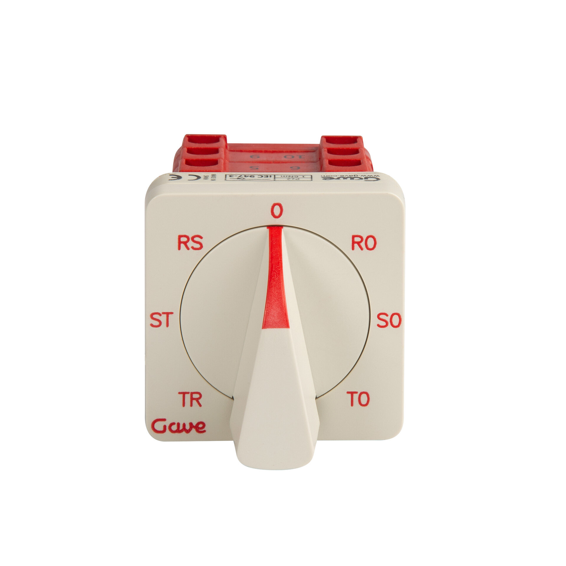 Conmutador de voltimetro tres fases-tres fases y neutro, IP20 con carátula TR-ST-RS-0-R0-S0-T0 color gris 48x48 para fijación panel. 3 polos y 3+N polos 12A.Tamaño D0. Mando ergonómico de montaje rápido sin tornillos. Conexionado con bornes de jaula para cable 2,5-6 mm². Compatible con múltiples accesorios de la serie A5.