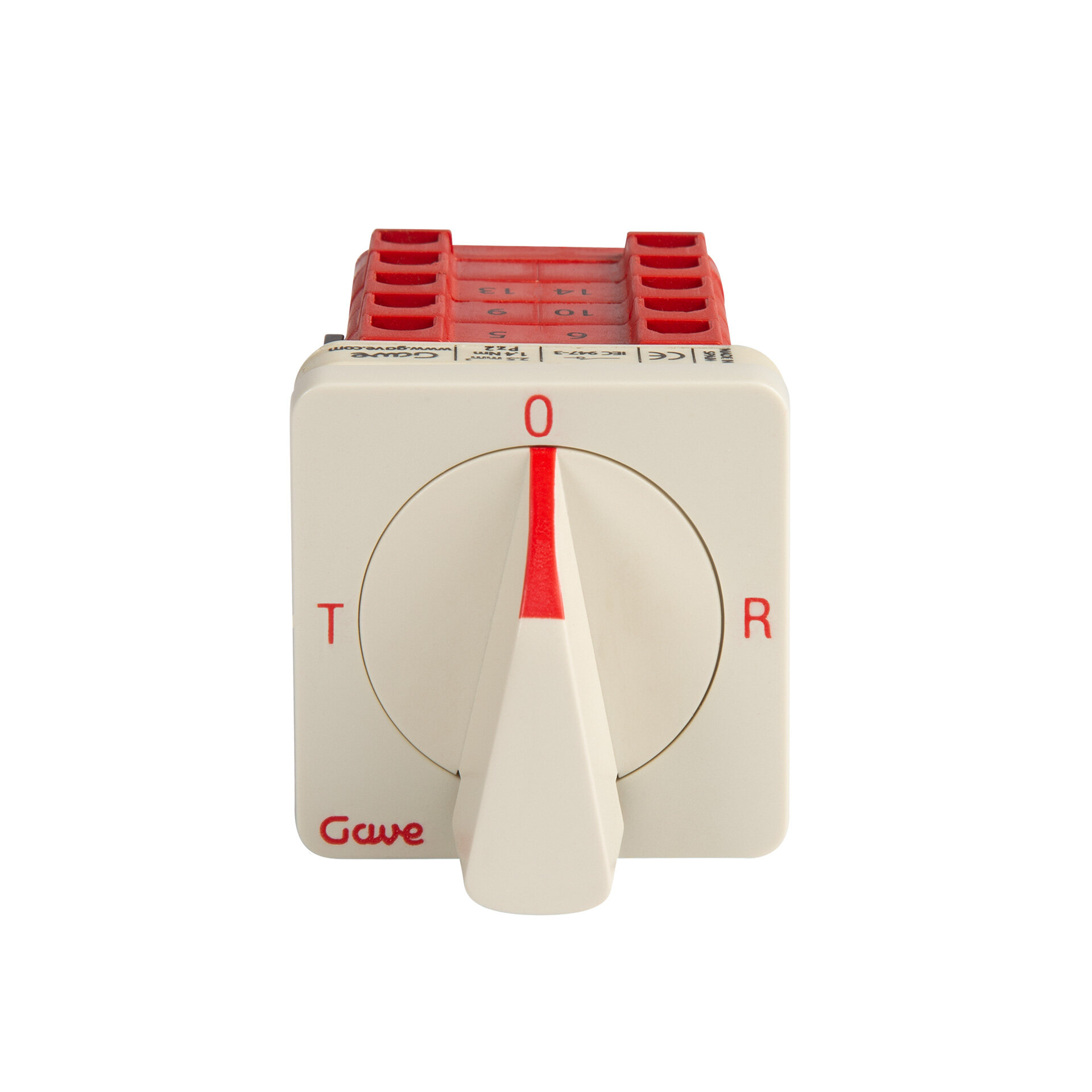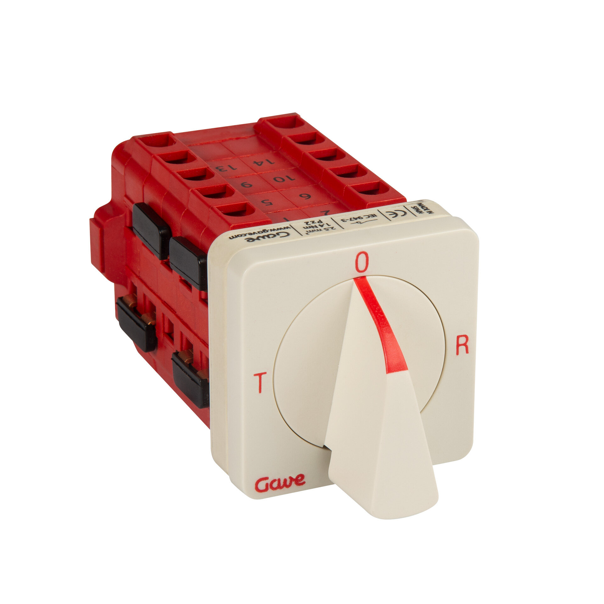 Conmutador de amperimetro 3 circuitos (directo o con transformador) , IP20 con carátula 0-R-S-T color gris 48x48 para fijación panel. 16A.Tamaño D0. Mando ergonómico de montaje rápido sin tornillos. Conexionado con bornes de jaula para cable 2,5-6 mm². Compatible con múltiples accesorios de la serie A5.