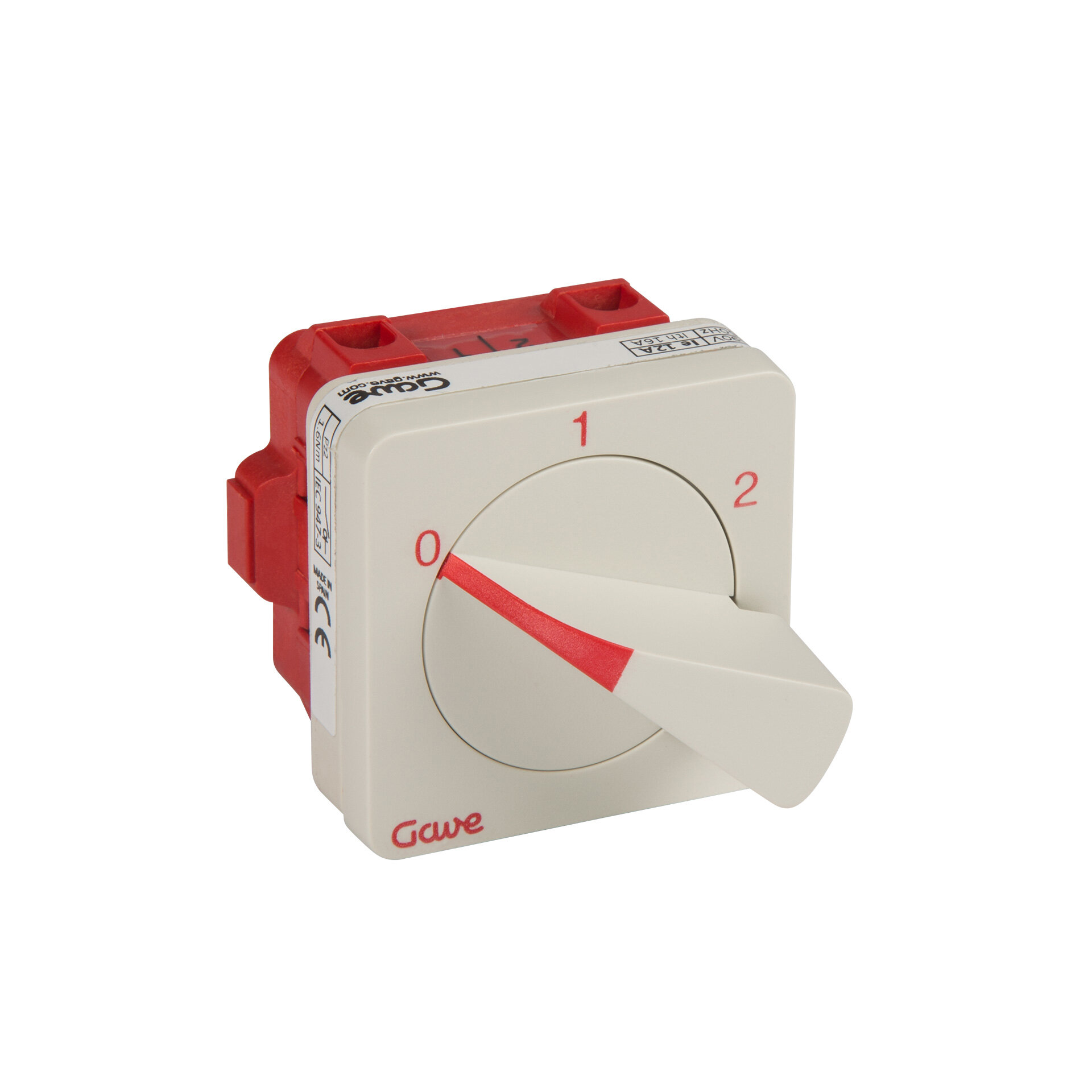 Conmutador de grupo de levas (dos sectores unipolares) , IP20 con carátula 0-1-2 color gris 48x48 para fijación panel. 1 polo 12A.Tamaño D0. Mando ergonómico de montaje rápido sin tornillos. Conexionado con bornes de jaula para cable 2,5-6 mm². Compatible con múltiples accesorios de la serie A5.