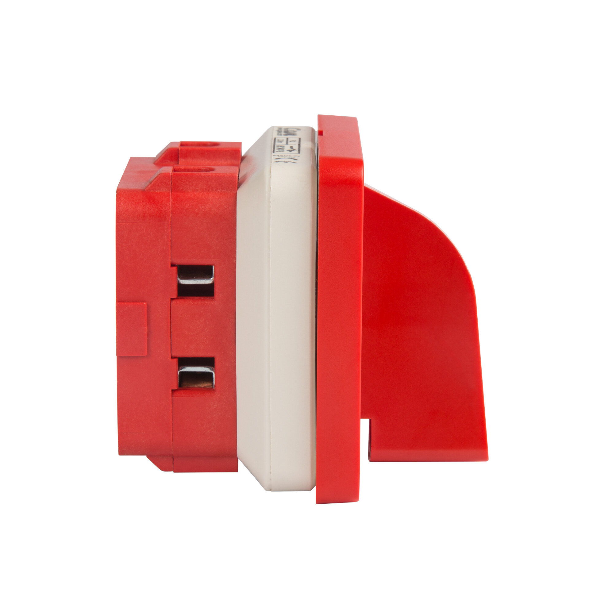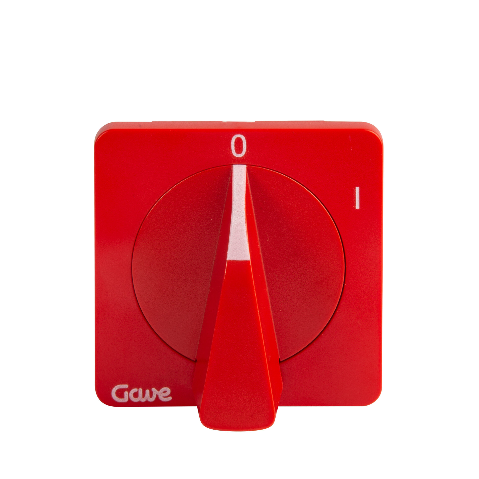 Interruptor-seccionador de levas , IP20 con carátula 0-1 con retorno a 0" color rojo 64x64 para fijación panel. 1 polo 25A. Tamaño D1. Mando ergonómico de montaje rápido sin tornillos. Conexionado con bornes de jaula para cable 6-16 mm². Compatible con múltiples accesorios de la serie A5."