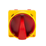 Interruptor de levas con mando de seguiridad bloqueable por candados con tratamiento antimicrobiano. Mando rojo/carátula amarilla 64x64 para fijación panel. 2 polos 32A.Tamaño D0. Mando ergonómico de montaje rápido sin tornillos. Conexionado con bornes de jaula para cable 2,5-6 mm². Compatible con múltiples accesorios de la serie A5.