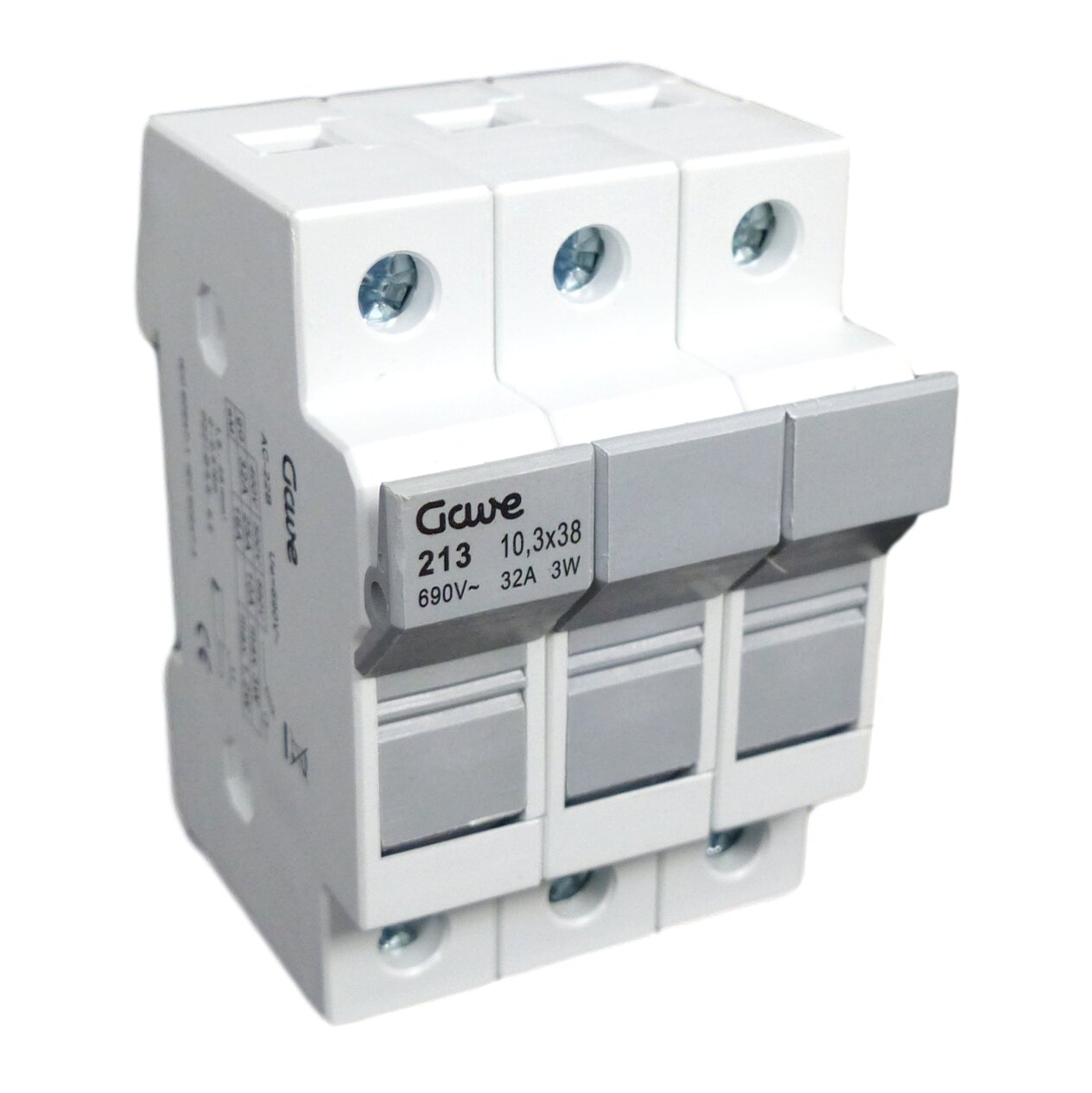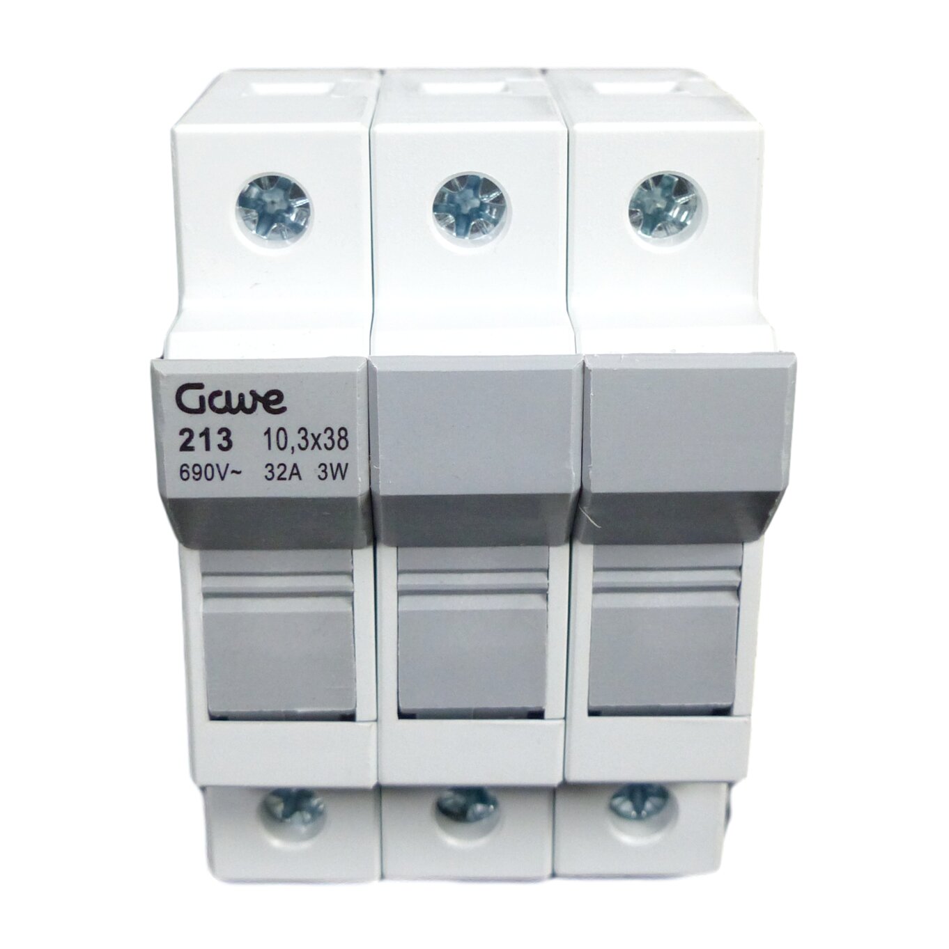 PORTAFUSIBLE 10X38 3P 32A.CARRIL DIN