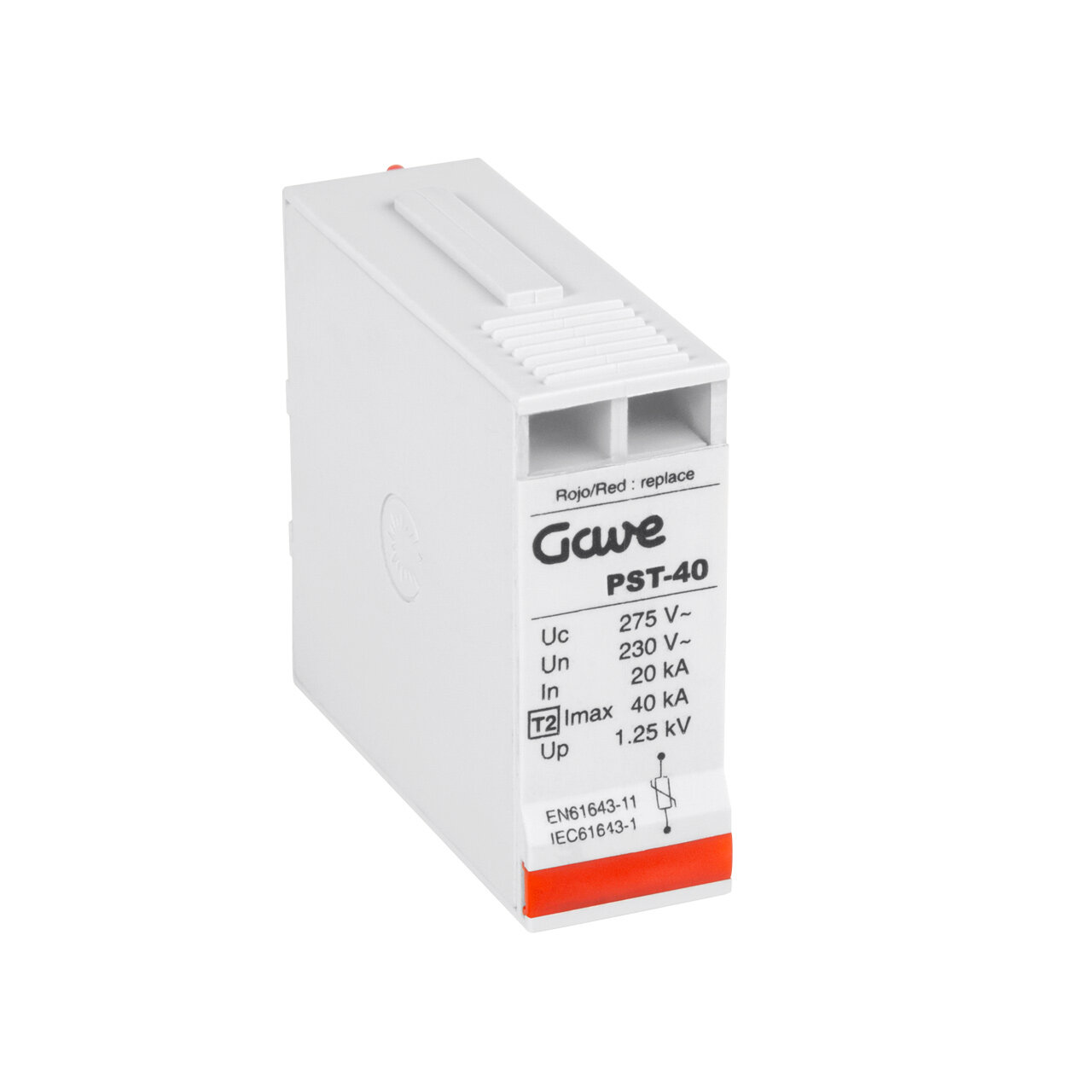 PST-40 CARTUCHO FASE IMAX. 40KA Cartucho de recambio para el protector de sobretensiones modelos PST240/440, módulo de Fase, intensidad máxima 40 kA.
