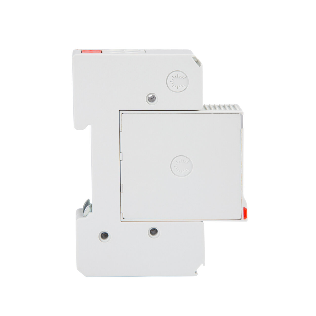 Protector de sobretensiones transitorias de corriente continua para instalaciones fotovoltaicas aisladas, Tipo II para la protección de los reguladores y cargadores contra tensiones elevadas transitorias, tensión nominal continua 110 V DC, tensión máxima de régimen permanente 150V DC, tecnología Varistor, módulos enchufables y fácil reemplazo, indicador visual del estado del módulo, corriente de descarga nominal 20kA, corriente de descarga máxima 40kA, corriente máxima de descarga total 80kA, nivel de protección Up 500V, 1 módulo de ancho y montaje en carril DIN.