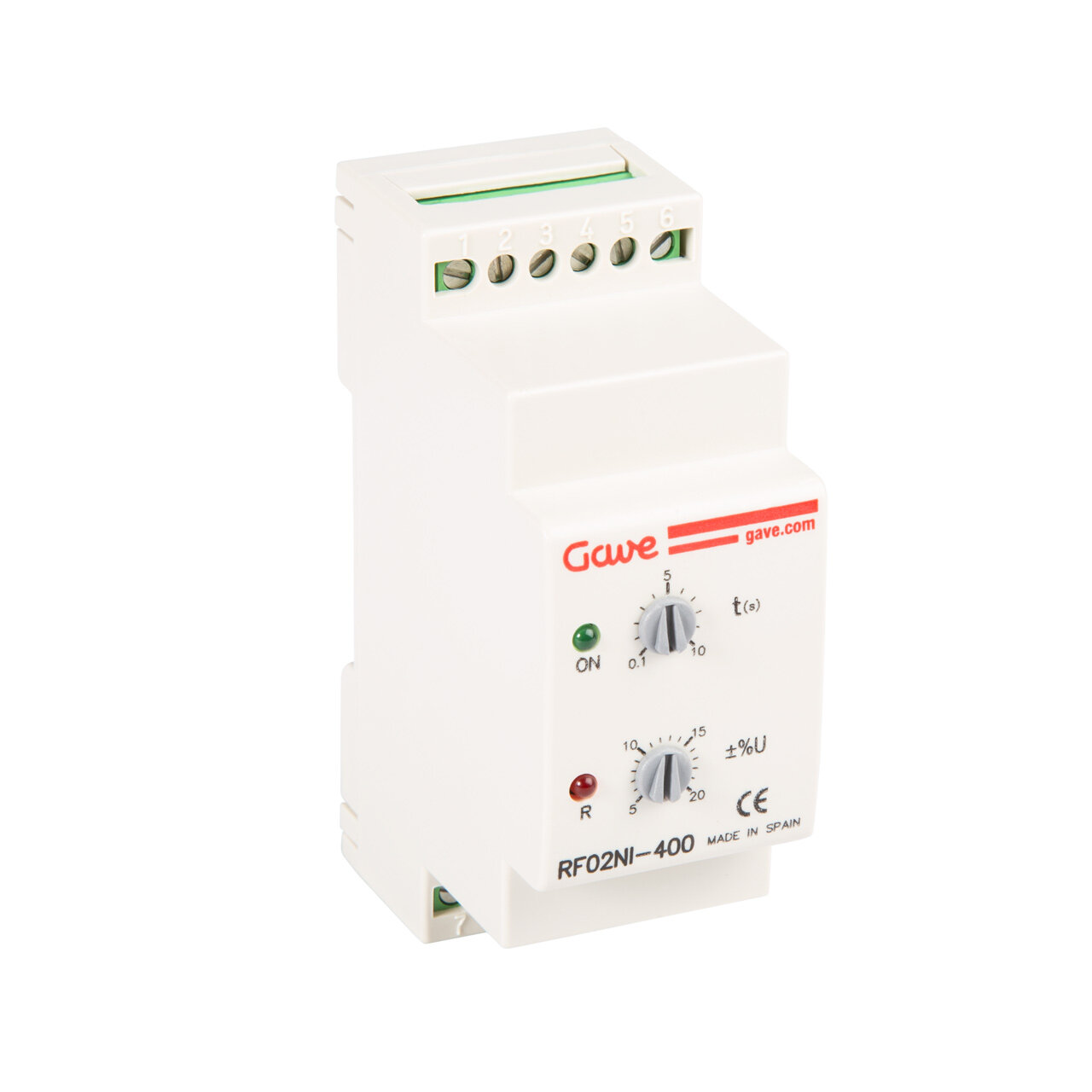 Relé de control de secuencia, fallo de fase y variación de voltaje, tensión de alimentación de 230V AC 50/60Hz entre fases y neutro (±20%), detección de fallo de fase, detección de variación de tensión de cualquier fase regulable de ±5% a ±20% y detección de secuencia de fases incorrecta, desconexión a la detección de fallo para la protección de receptores eléctricos mediante relé conmutado, poder de corte 8A /250V AC Cos?=1, tiempo de desconexión frente a variaciones de tensión regulable de 0,1 a 10 segundos, tiempo de desconexión frente a secuencias incorrectas o fallo de fase 0,1 segundos, rearme inmediato (0,1 segundos aprox.), leds de señalización para visualizar estado de la red, 2 módulos de ancho y montaje en carril DIN.